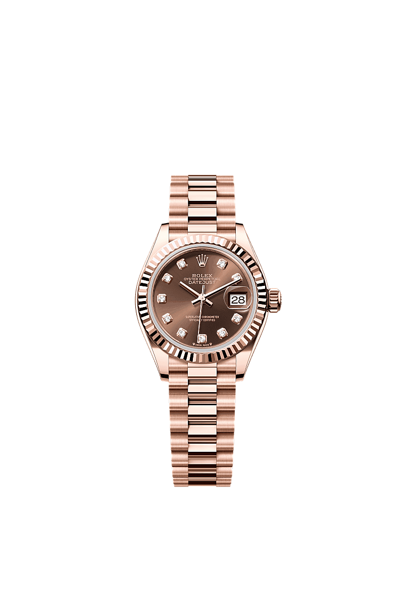 Rolex 279175-0016 Lady-Datejust 28 Everose Fluted / President / Quadrante in cioccolato con diamanti