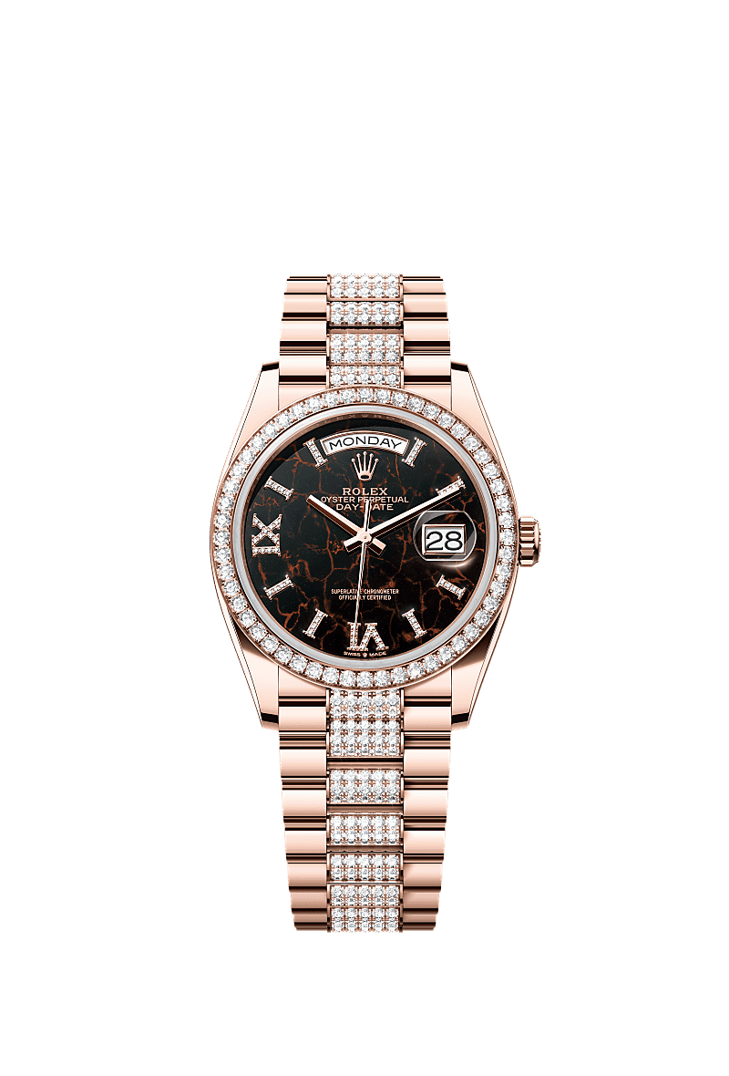 Rolex 128345RBR-0045 - Day-Date 36 Everose Gold / Diamond / Eisenkiesel / President-Diamond
