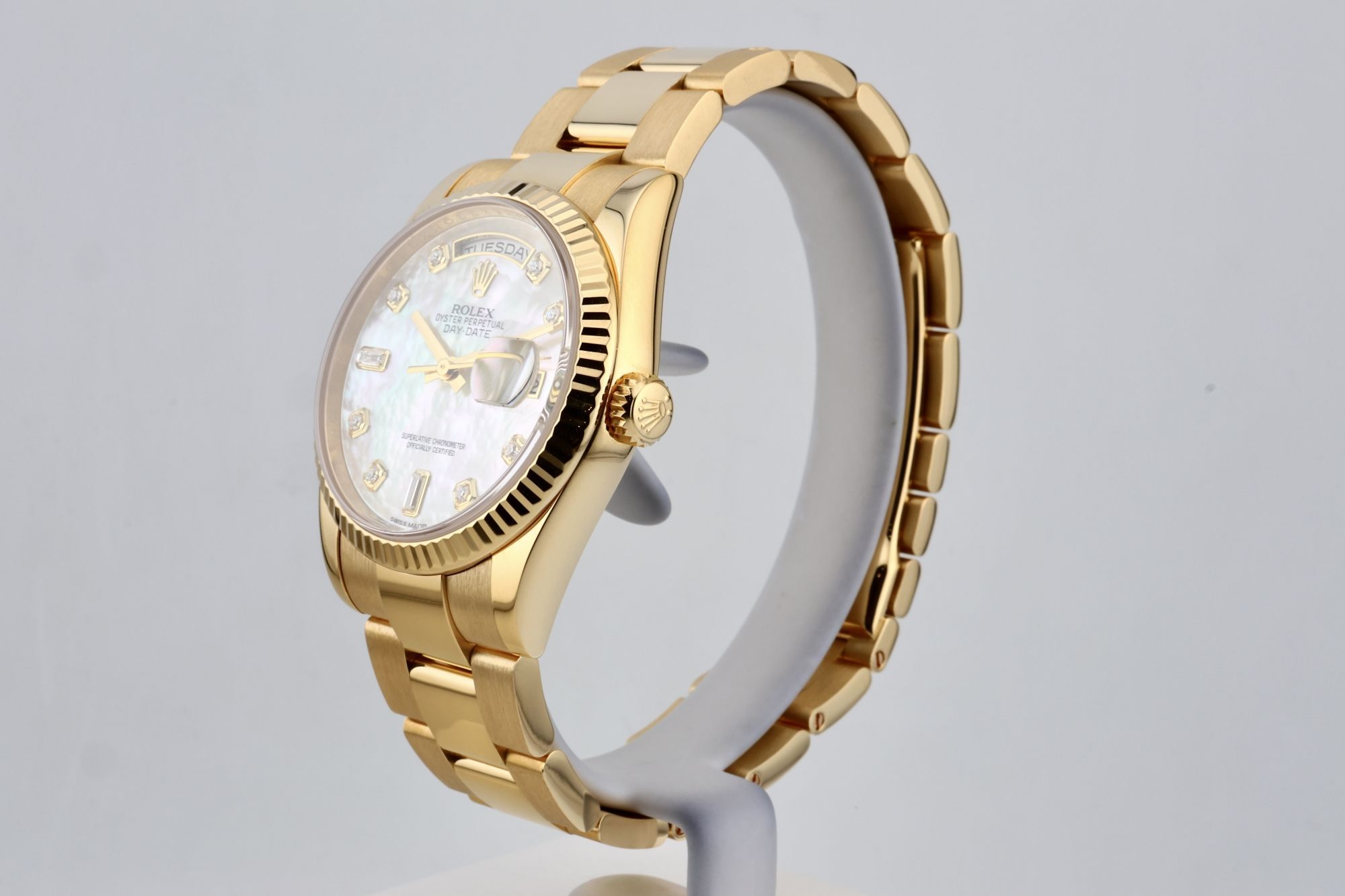 Rolex Day-Date 36 Yellow Gold - White MOP Diamond Dial - 118238 2017.