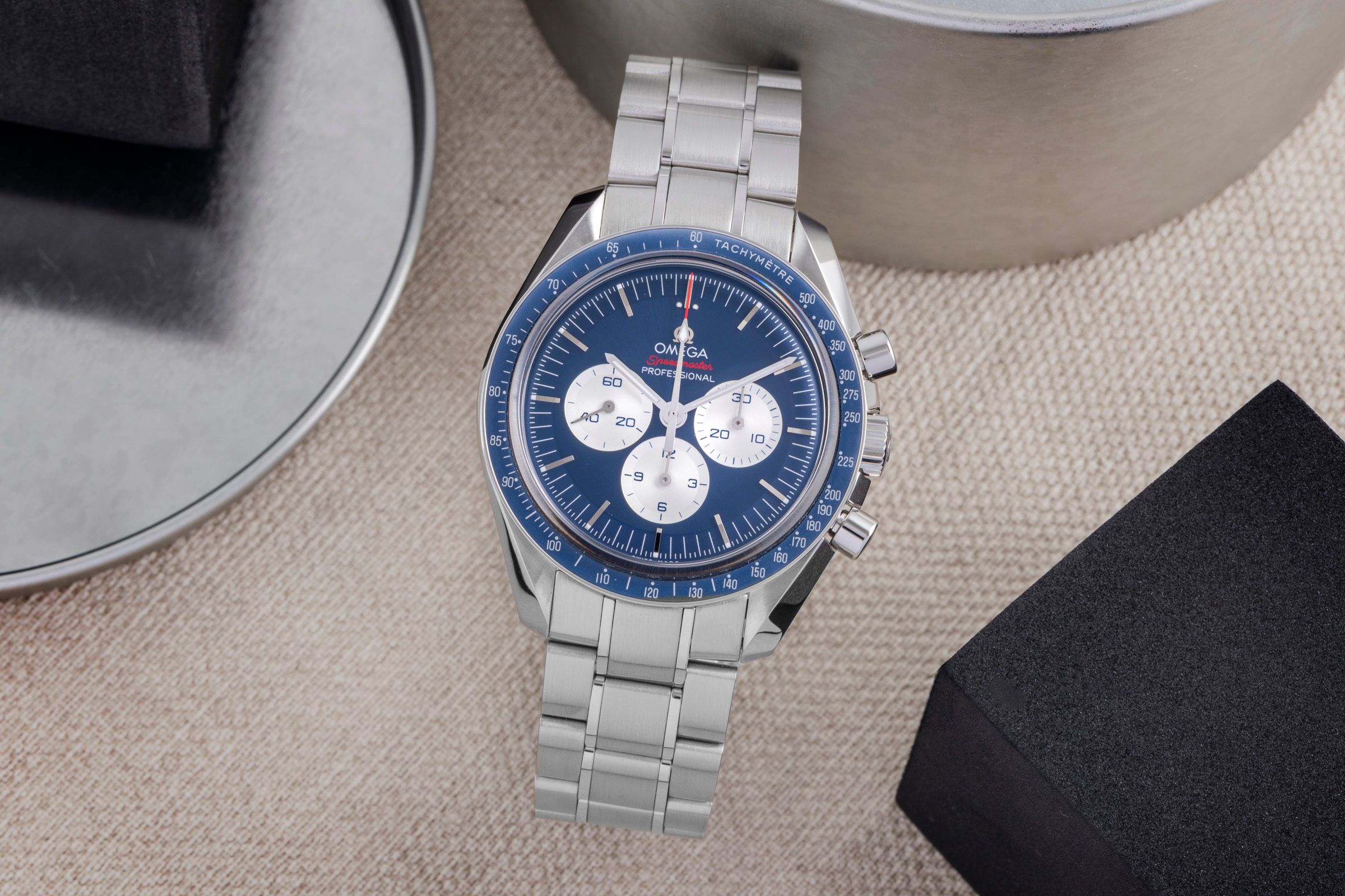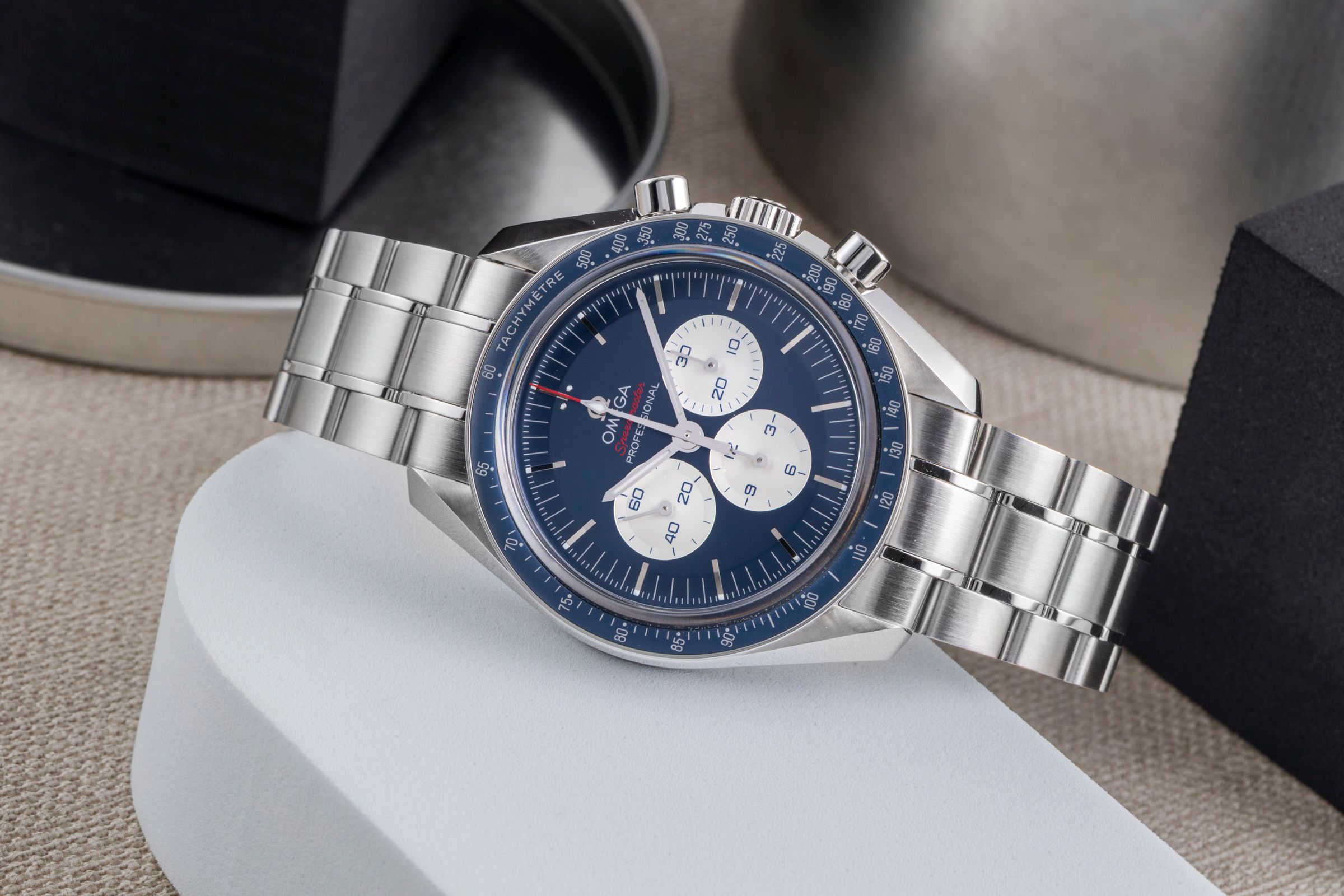 Alternative title: Omega 522.30.42.30.03.001 Speedmaster Professional Moonwatch Stainless Steel / Blue / Tokyo Olympics; Omega Speedmaster Moonwatch Tokyo 2020 Blue Chronograph Ref. 522.30.42.30.03.001 [2507420]