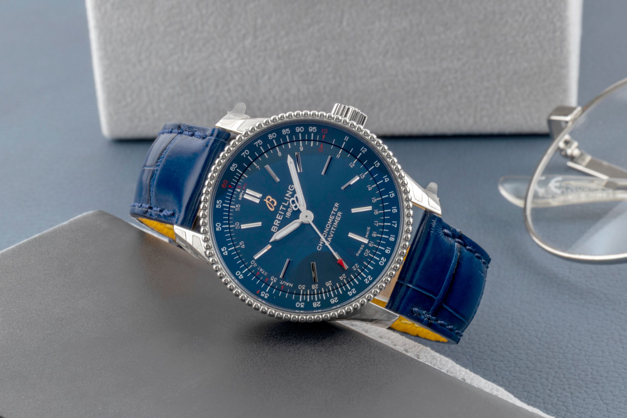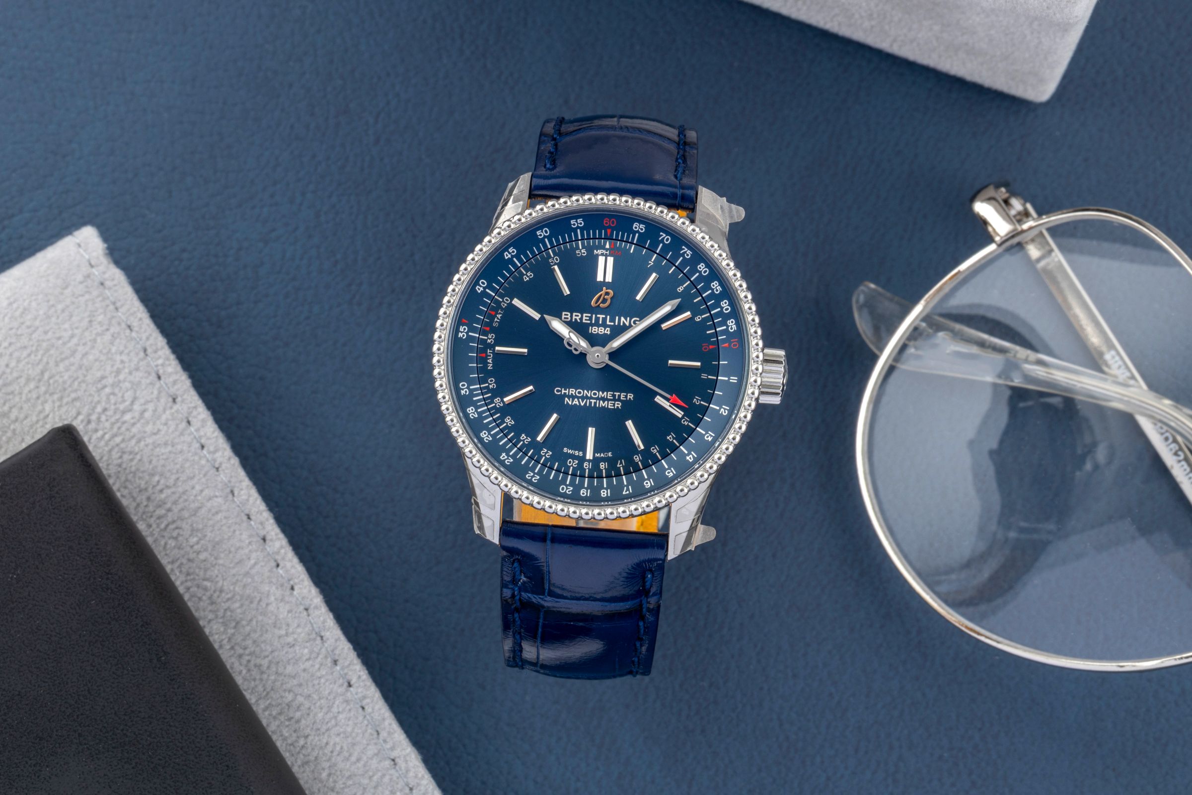 Alternative title: Breitling A17395161C1P1 Navitimer 1 35 Automatic Stainless Steel / Blue / Croco / Pin; Breitling Navitimer 35 Edelstahl Automatik Medium Ref. A17395161C1P1 B&P 2022 [2600735]