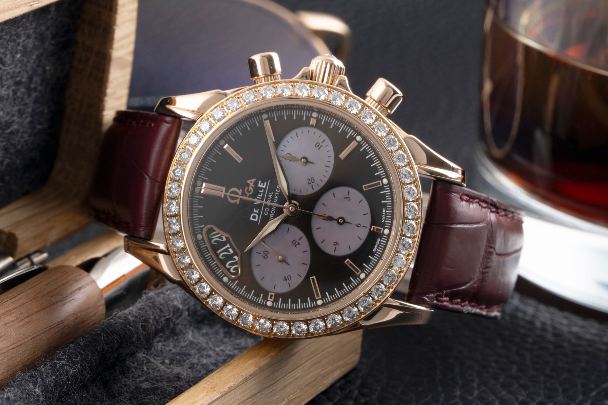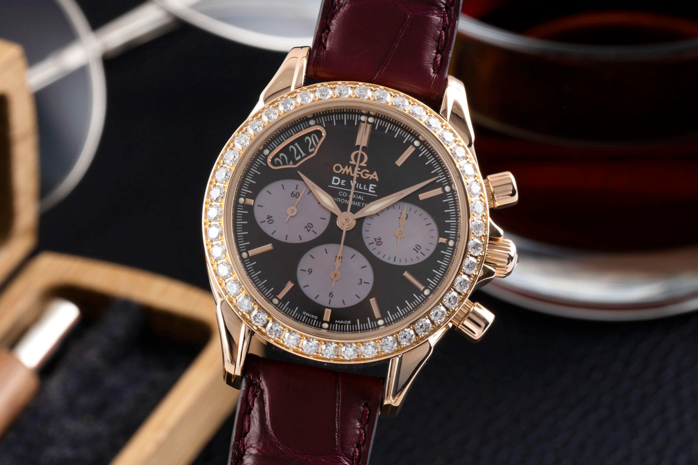 Alternative title: Omega 4677.60.37 - De Ville Co-Axial; Omega De Ville 18K Rotgold Chronograph Diamanten Damenuhr Ref. 4677.60.37 [2600859]