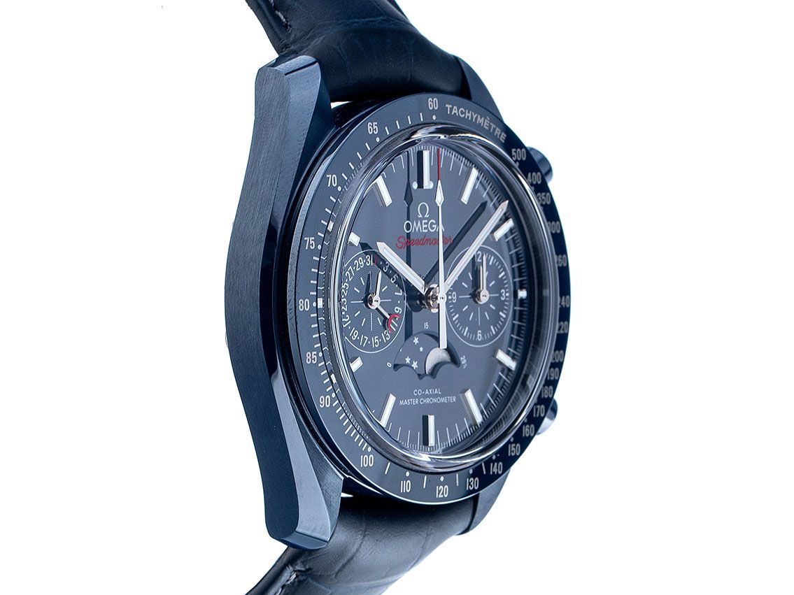 Omega Speedmaster Moonphase Ceramica Automatica Co-Axial Master Chronometer Cronografo Fase Lunare Cinturino in Pelle Chiusura Deployante