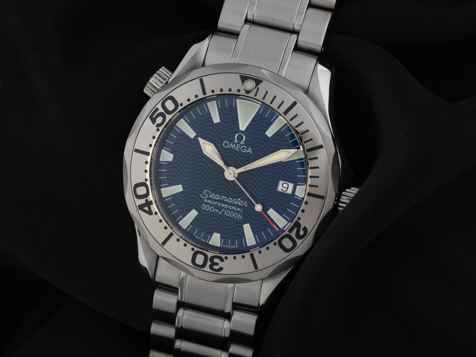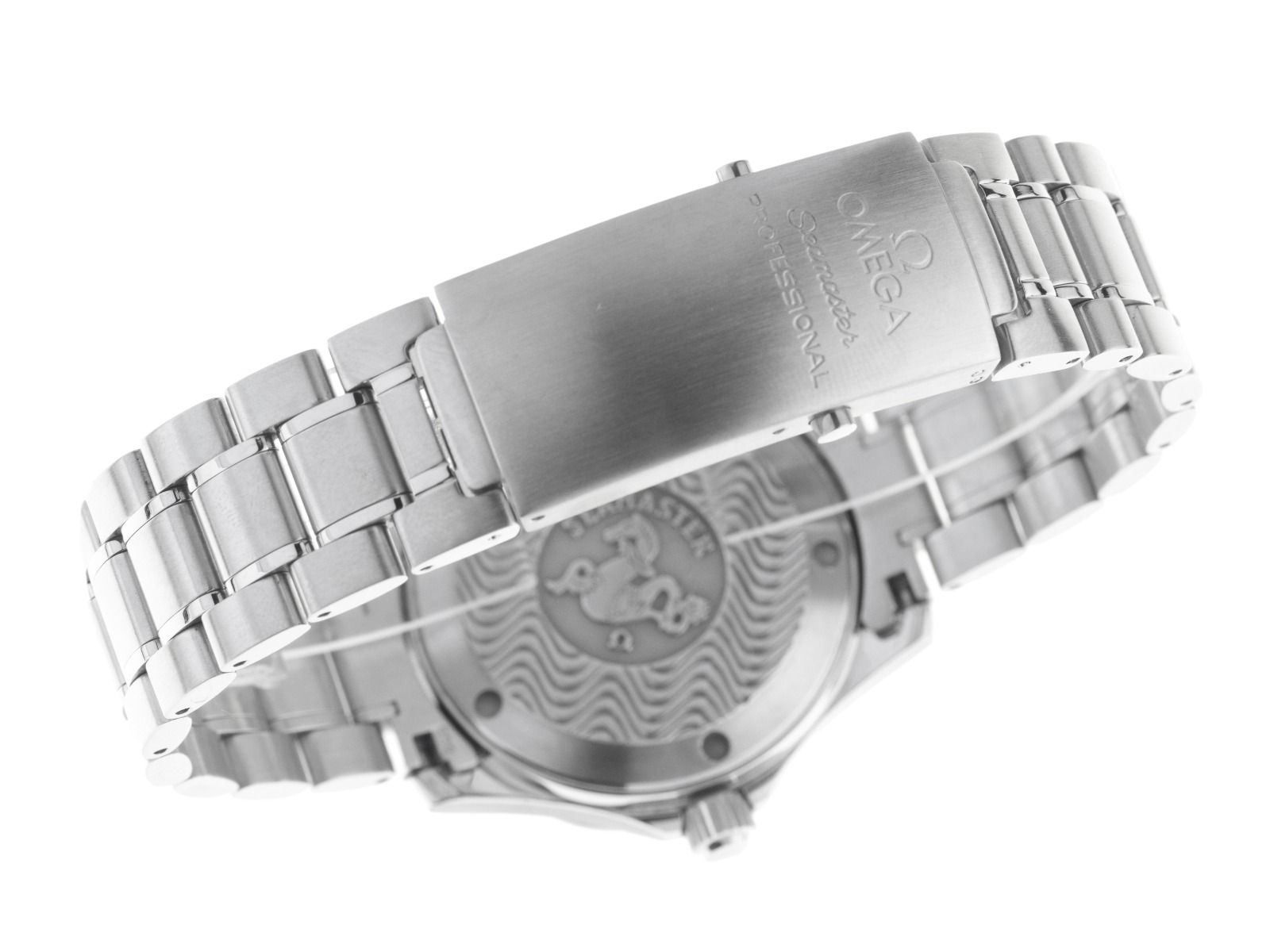Cassa in acciaio inox lucido e satinato, diametro della cassa senza corona 36mm, altezza della cassa 10,9mm. Lunetta in acciaio inox con scala di 60 minuti, unidirezionale. Valvola per elio a ore 10. Bracciale in acciaio inox lucido e satinato, chiusura pieghevole di sicurezza in acciaio inox con logo del produttore e prolungamento per subacqueo. Quadrante blu con motivo a onde, indici e lancette scheletrate in acciaio inox. Movimento al quarzo, cronometro con certificato, calibro 1538 con 6 rubini. Indicazione di ore, minuti e secondi tramite lancette centrali con fermo secondi per la regolazione precisa dell'ora, indicazione della data con regolazione rapida a ore 3. Vetro zaffiro antigraffio. Corona a vite con protezione laterale e logo del produttore. Fondello in acciaio inox avvitato e inciso con rilievo Seamaster. Peso dell'orologio incluso il bracciale 134g, lunghezza del bracciale incluso la cassa 195mm. Numero di riferimento: 2263.80.00, numero di cassa: 57098XXX, anno di costruzione: 2000, ID: P132232000825H-4200, numero articolo: 10000081774. Con controllo del movimento, nuova batteria e completa revisione esterna di agosto 2025. Scatola originale Omega con imballaggio e documenti di garanzia senza data di registrazione e estratto dal Watch Register di agosto 2025, certificato The Watch Register / senza registrazione (database internazionale per orologi smarriti o rubati), Full Set. Super affare, pezzo da collezione molto raro. Ottime condizioni. Tempi di consegna immediati.