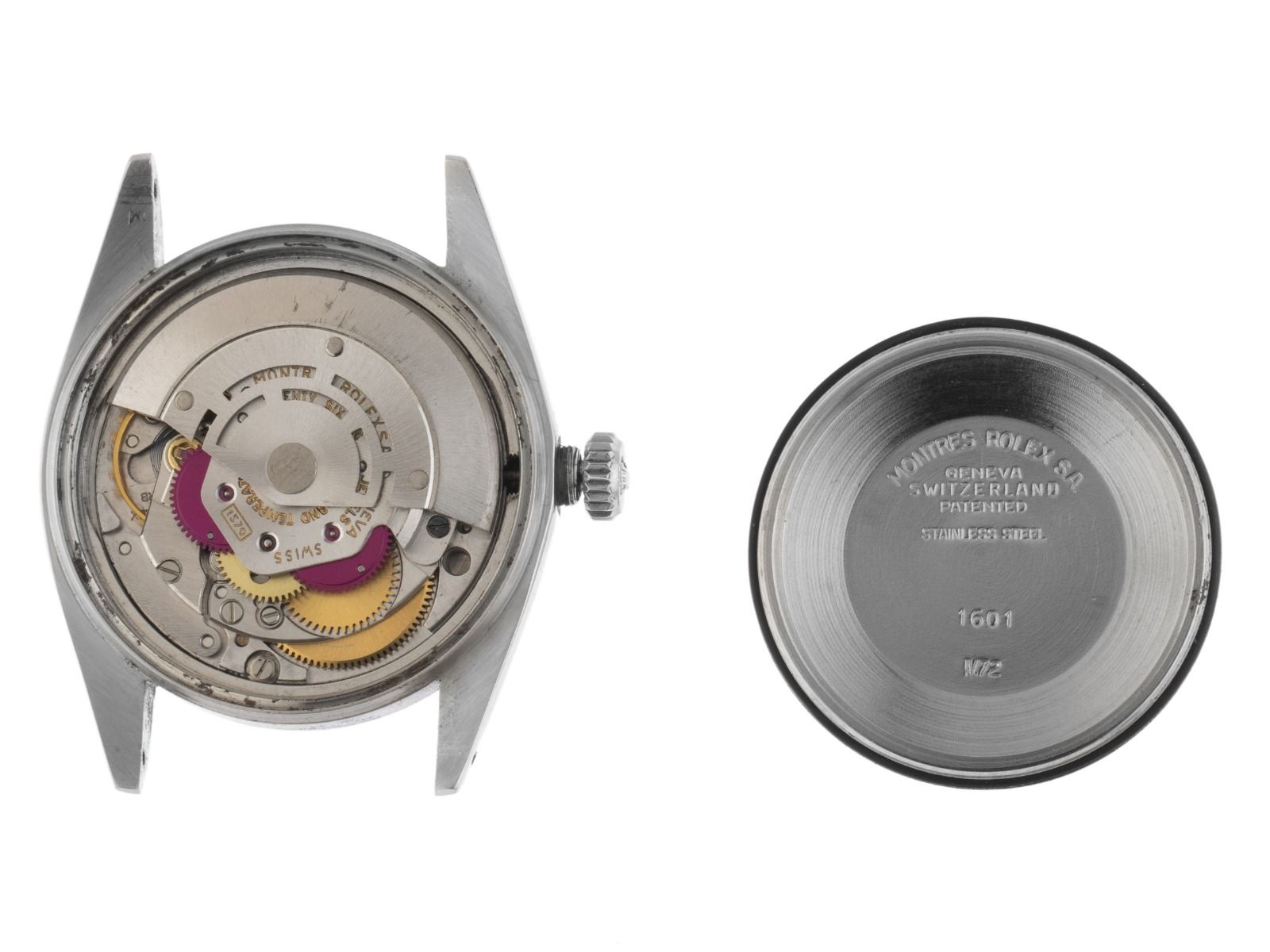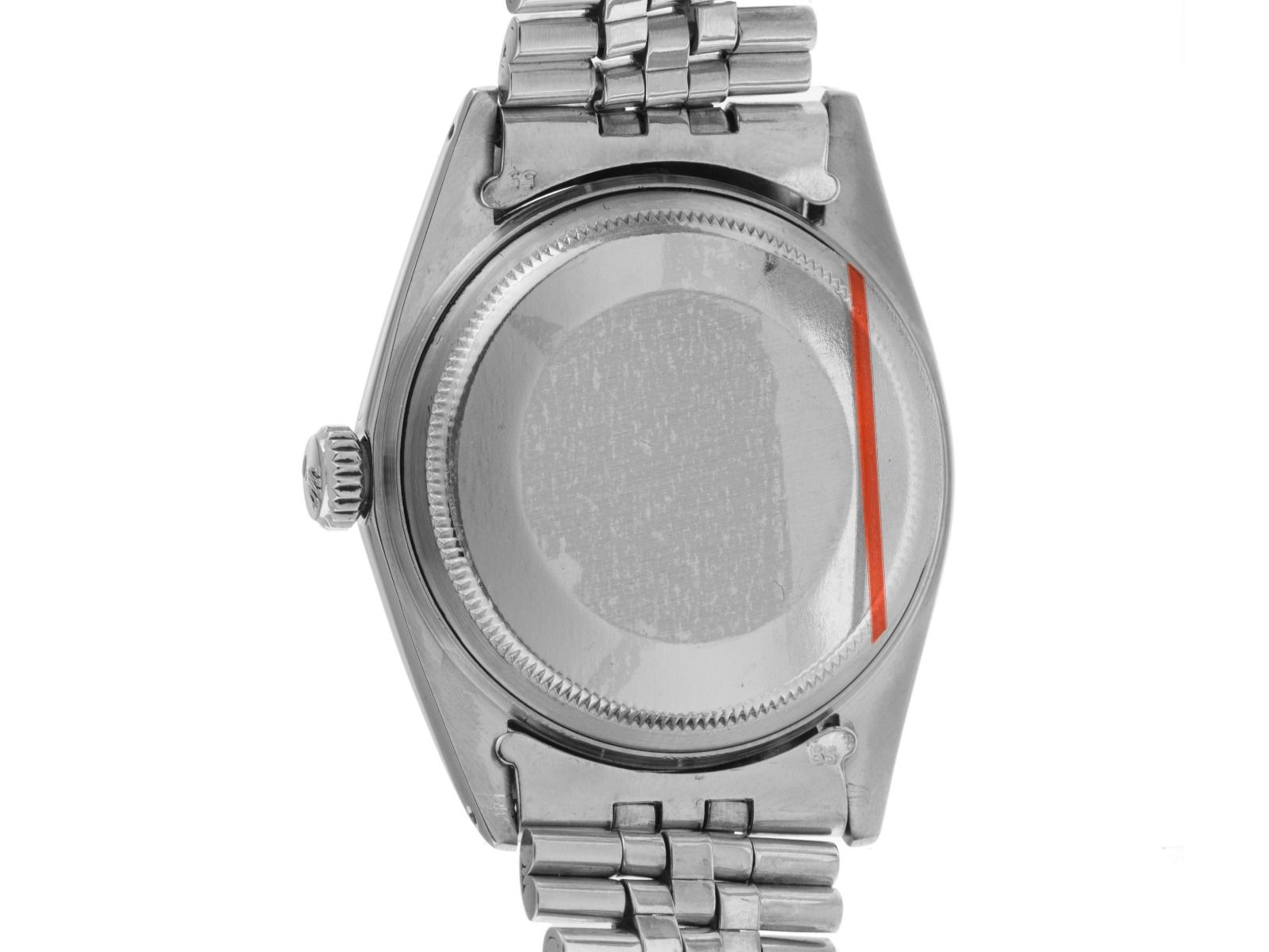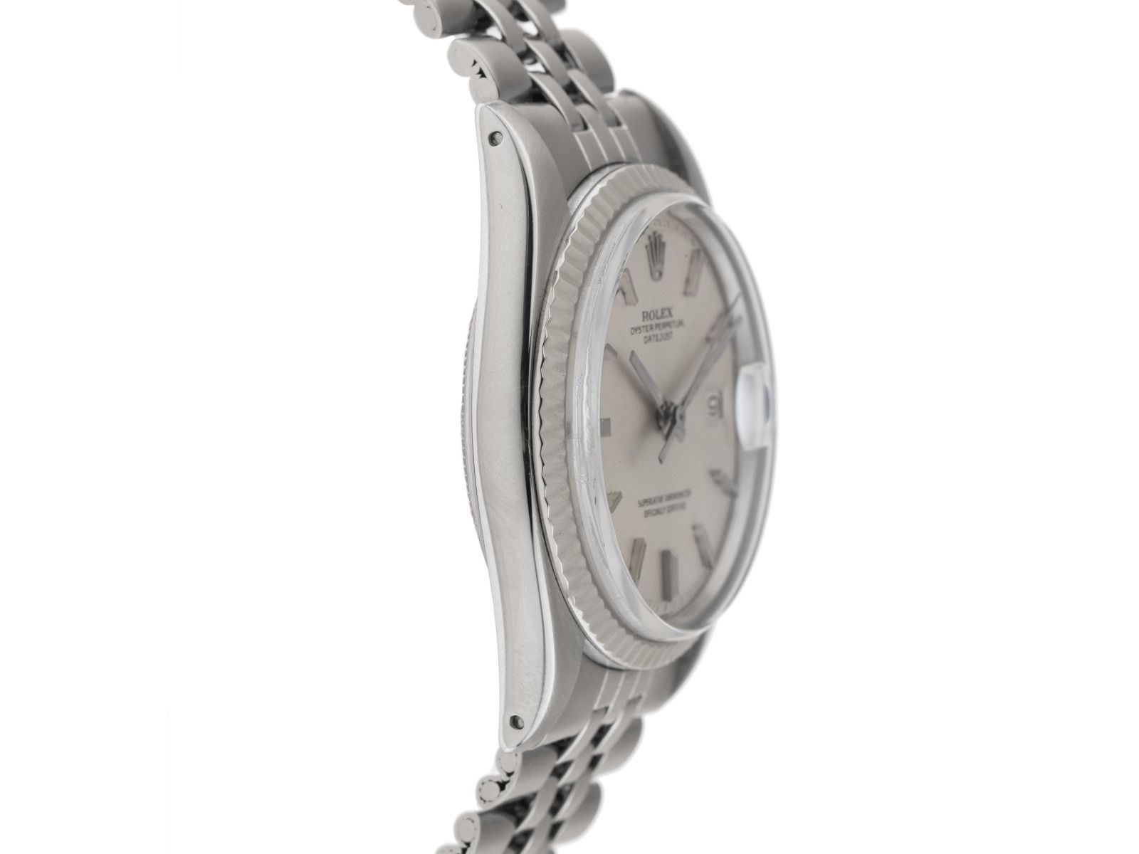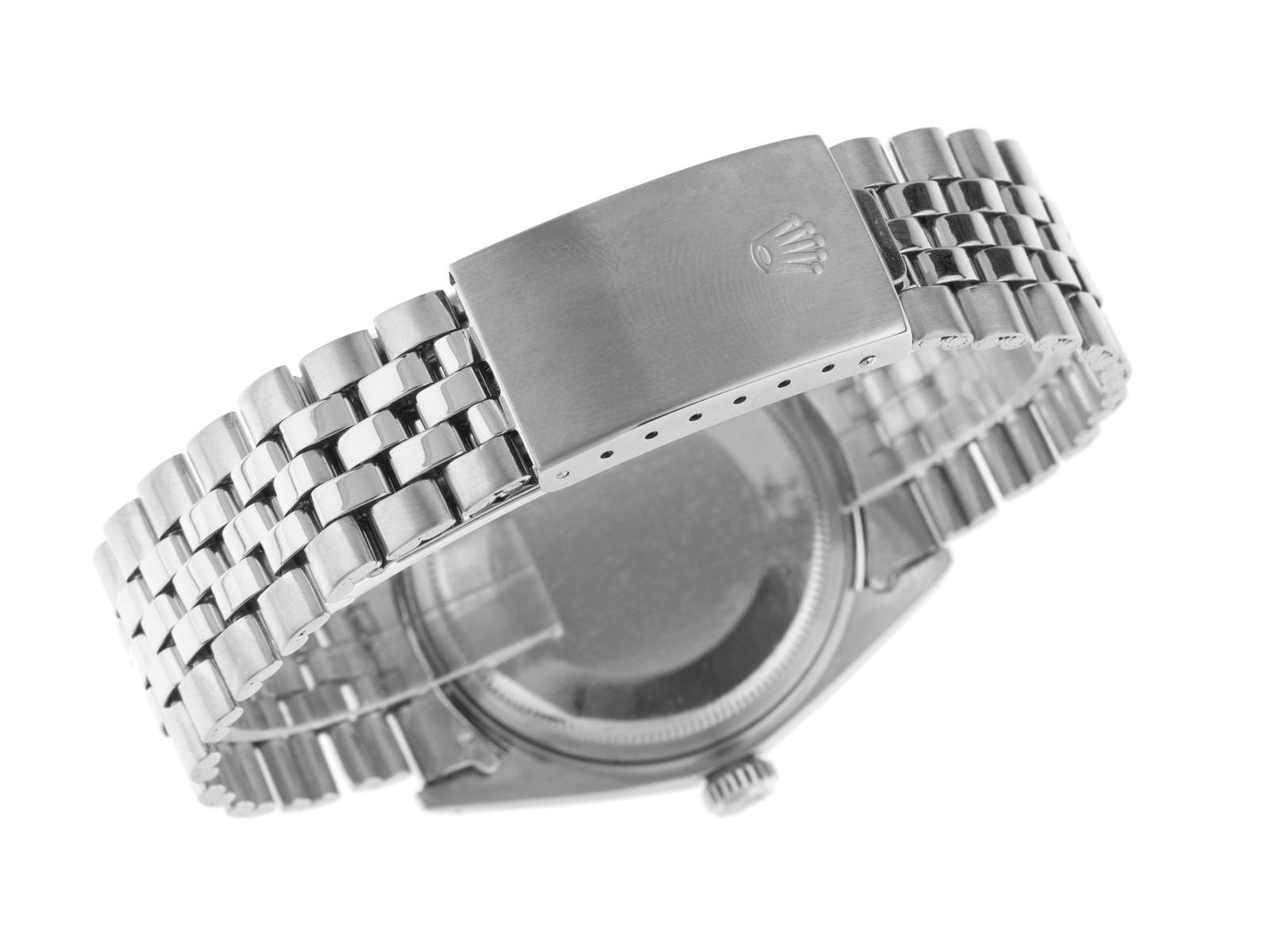 Cassa in acciaio lucido e satinato, diametro cassa senza corona 36mm, altezza cassa 11,9mm. Lunetta in oro bianco 18kt rigata e lucida. Bracciale Jubilé piegato in acciaio lucido e satinato, chiusura deployante in acciaio con logo del produttore. Quadrante argentato con minuteria a rilievo, indici applicati e lancette in oro bianco. Movimento automatico, cronometro, calibro di manifattura Rolex 1570 con 26 pietre preziose. Indicazione di ore, minuti e secondi tramite lancette centrali, indicazione della data sotto lente di ingrandimento alle 3 con 6/9 aperti (sei e nove aperti nell'indicazione della data). Vetro plexiglass curvo. Corona a vite con logo del produttore. Fondello in acciaio avvitato. Peso dell'orologio incluso il bracciale 84g, lunghezza del bracciale incluso la cassa 180mm. Numero di riferimento: 1601, anno di costruzione: 1972, numero di cassa: 3218XXX, ID: KA1634118621025H-8500, numero articolo: 10000082822. Con controllo del movimento e completa revisione esterna di ottobre 2025. Scatola originale Rolex con scatola esterna e documenti di garanzia senza data di registrazione, descrizione, astuccio in pelle, sigillo cronometro Rolex e estratto dal Watch Register di ottobre 2025, certificato The Watch Register / senza registrazione (database internazionale per orologi smarriti o rubati), Full Set. Super affare, investimento con potenziale di apprezzamento. Ottime condizioni. Tempi di consegna immediati.