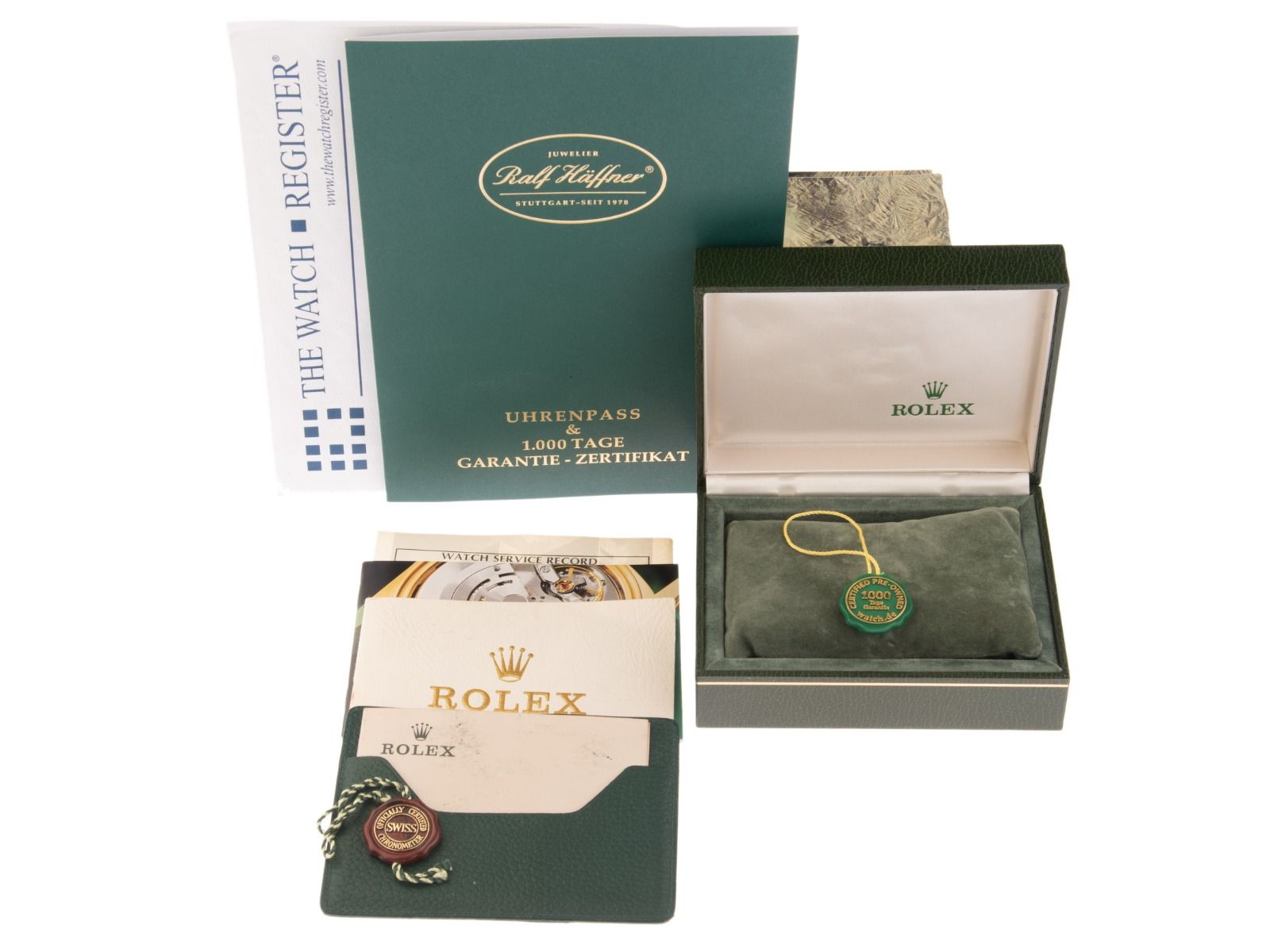 Incluso sigillo certified pre owned / passaporto orologio con un'immagine a colori, la descrizione dettagliata e il valore di sostituzione dell'orologio superiore a 8500,-€ e 1000 giorni di garanzia dalla data di acquisto.
