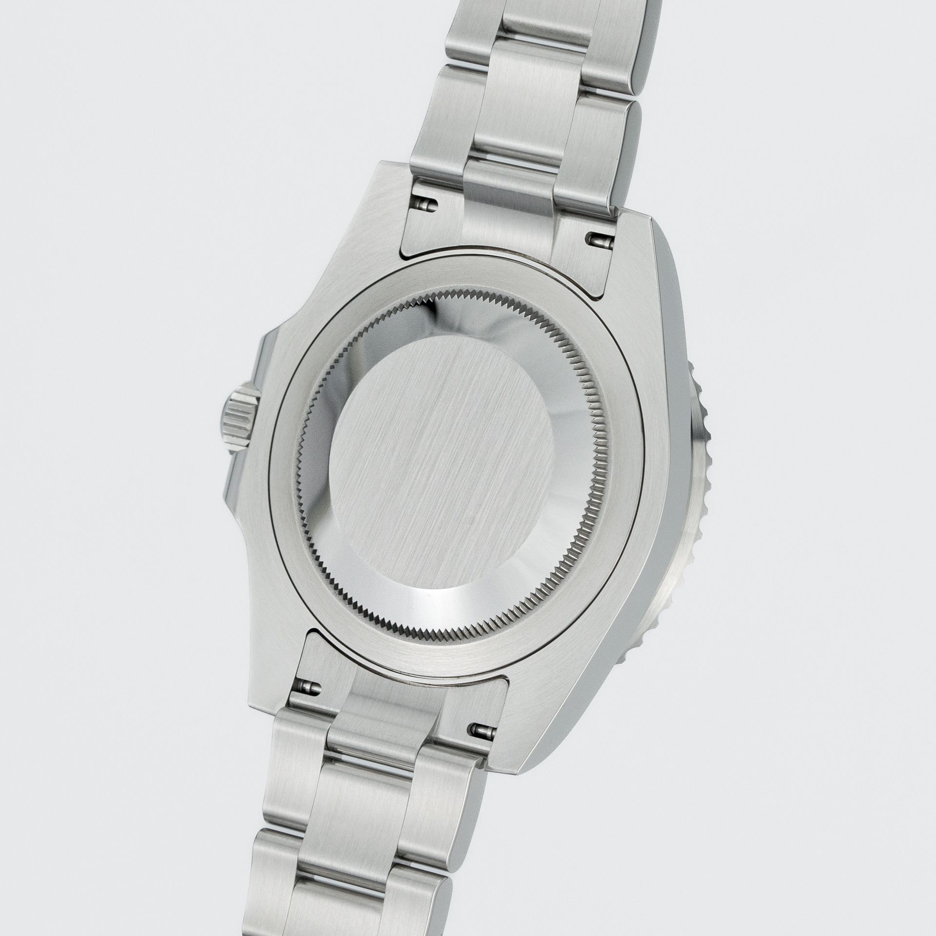 Per il fondello dell'orologio, Rolex utilizza un semplice fondello solido (come, peraltro, in tutti i suoi modelli) – e in questo caso, è privo di qualsiasi marcatura, iscrizione o altra "decorazione". Come sappiamo tutti, Rolex utilizza acciaio nobile 904L – la differenza con il comune 316 L di altri marchi è nella maggiore resistenza (soprattutto contro l'acqua salata). È un fatto ampiamente noto che Rolex può essere definita fanatica quando si tratta dell'acciaio che utilizzano – gran parte dei processi metallurgici sono eseguiti internamente per garantire una qualità uniforme della materia prima – molti orologi sono passati tra le mie mani, ma posso dire con assoluta certezza che nessun altro marchio dedica così tanta attenzione e impegno alla qualità del prodotto finale in termini di finitura della cassa – e il risultato è inevitabilmente una qualità e una presenza uniche.