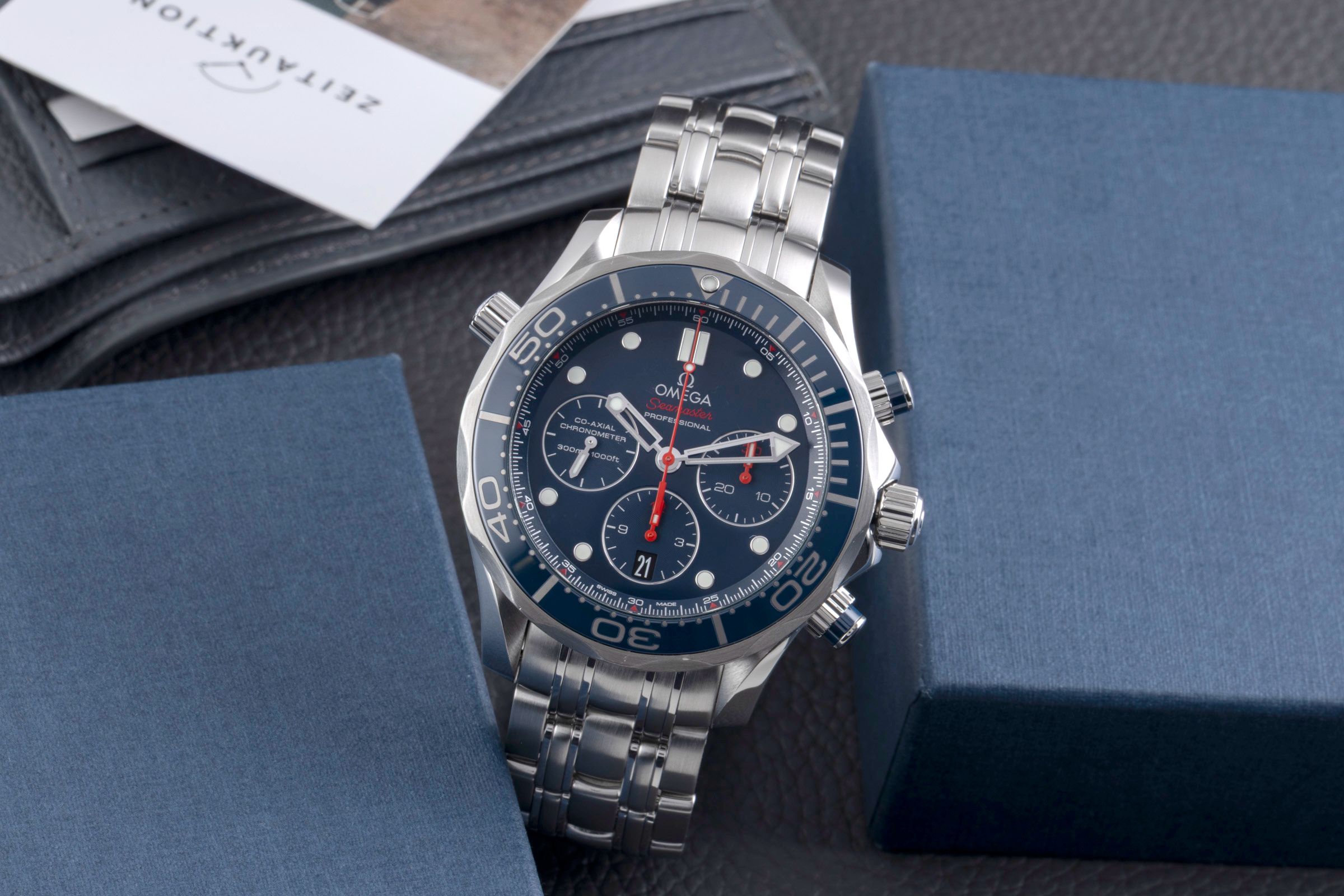 Alternative title: Omega 212.30.44.50.03.001 Seamaster Diver 300M Co-Axial 44 Chronograph Stainless Steel / Blue / Bracelet; Omega Seamaster Diver 300M Chronograph 44MM Ref. 212.30.44.50.03.001 B&P 2017 [2600665]