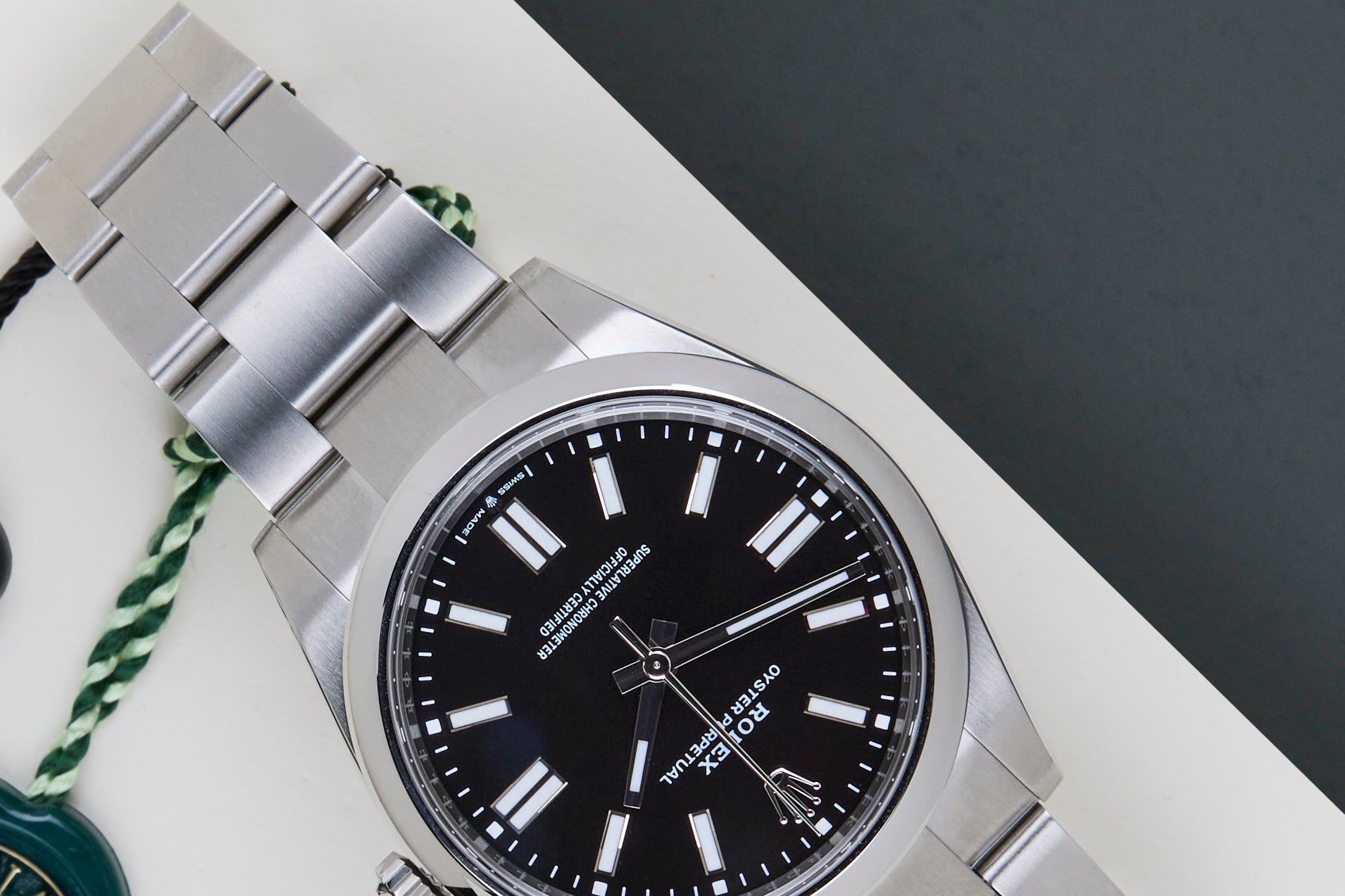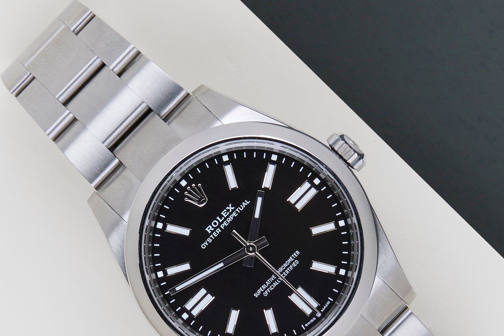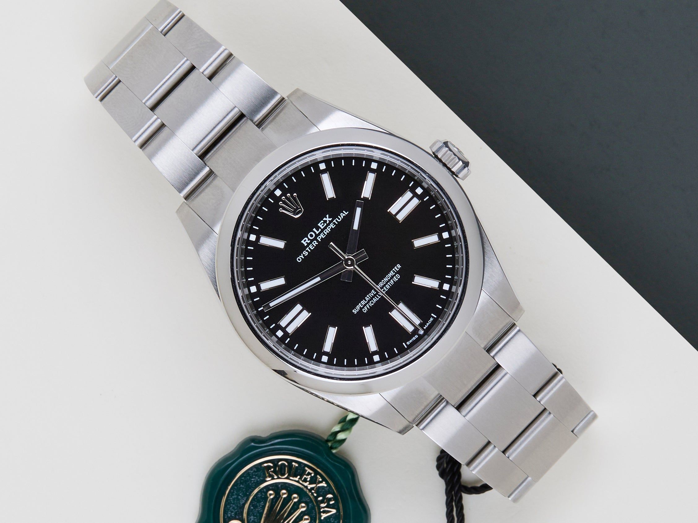 New & Unworn | Full Set | International Rolex Warranty Until December 2030 | Including Original AD Invoice (Netherlands)The Rolex Oyster Perpetual was first introduced by Rolex in the 1930s. It is characterized by its water-resistant Oyster case and self-winding Perpetual movement. The Rolex Oyster Perpetual is a simple yet elegant timepiece that is suitable for both casual and formal wear.This Rolex Oyster Perpetual 'Black Dial' was sold for the first time in December 2025.The watch is fully made out of stainless steel. Rolex uses 904L in its steel watches, which is an extremely resistant and highly polishable superalloy.The Rolex reference 124300 and 134300 differ mainly in movement and case design, with the 134300 featuring the newer 3230 movement and a subtly updated case shape, and a bigger crown.This Rolex Oyster Perpetual 41 is in New & Unworn condition and comes with the original Rolex Warranty Card and box. Furthermore, the watch still has Worldwide Rolex Warranty until December 2030.