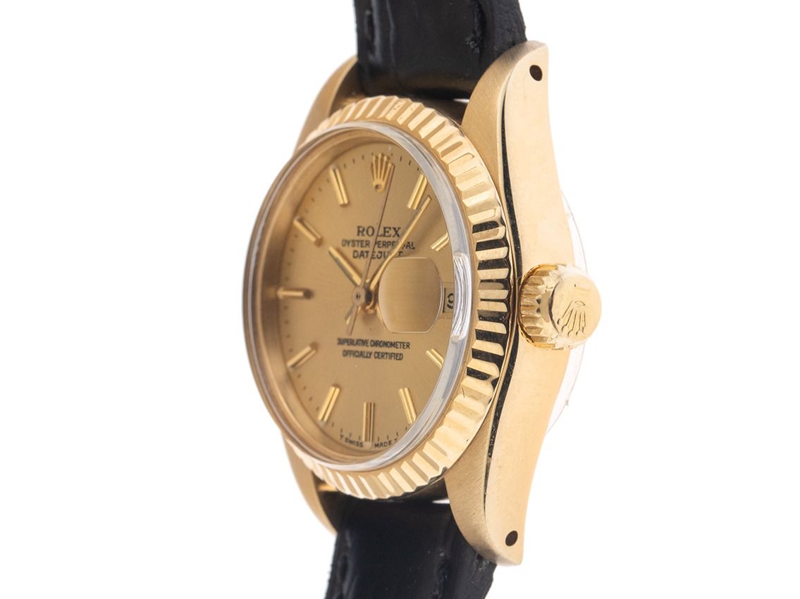 Rolex Datejust Lady open 6/9 18kt Gelbgold Automatik Armband Krokoleder