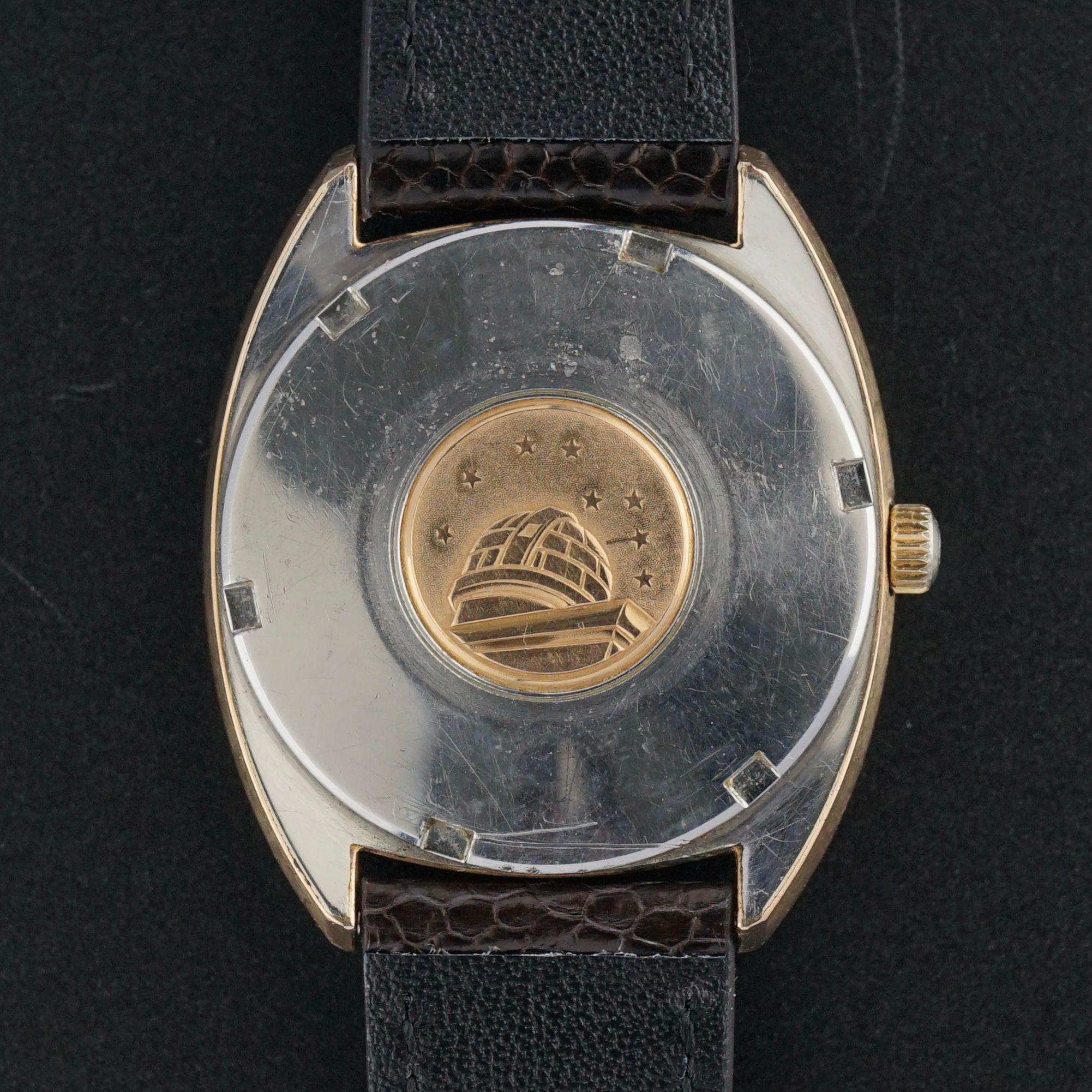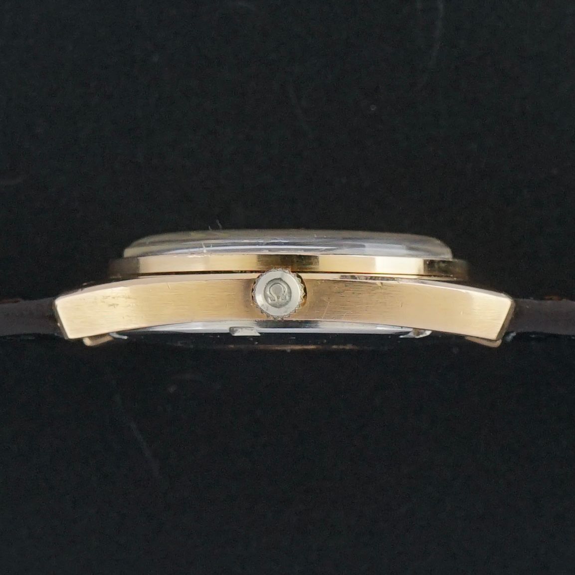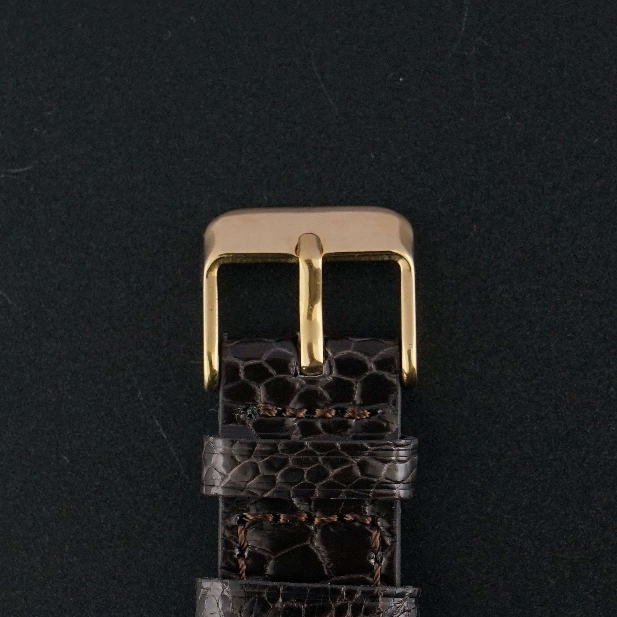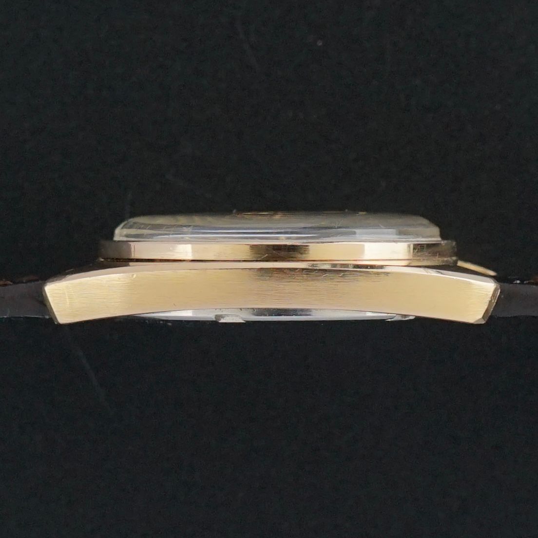 We have paired this piece with a high-quality brown leather strap with a crocodile motif and a light glossy finish, which suits the warm rose gold tone beautifully. The crown shows clear fading on the side, yet remains original and has therefore been left untouched, though it could be replaced later if the new owner prefers.