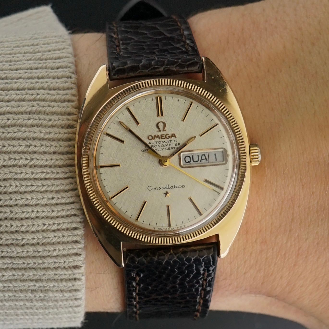 Vintage Omega Constellation DayDate Rose Gold Plated Linen dial CE 168.017 - 35mm - 1968