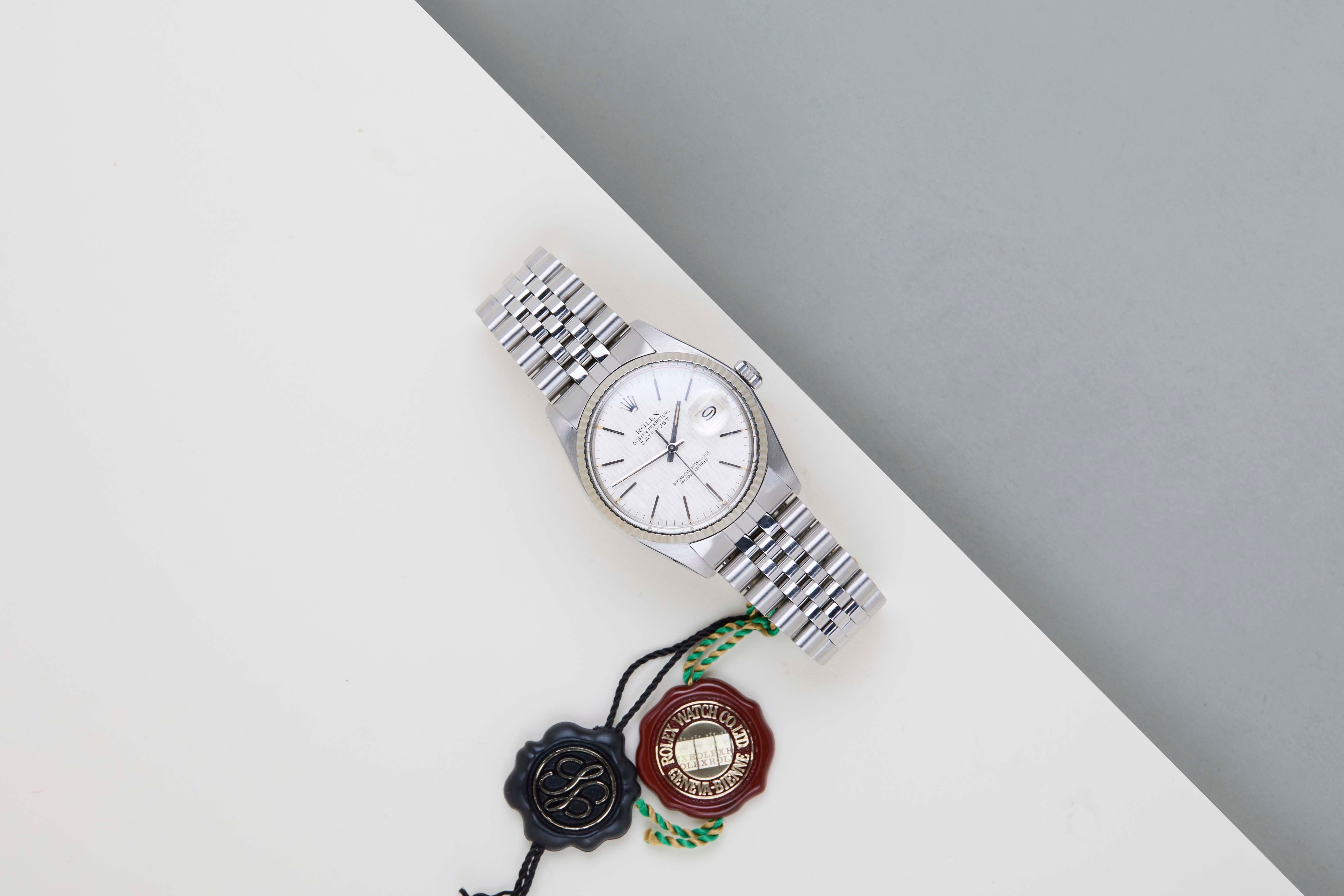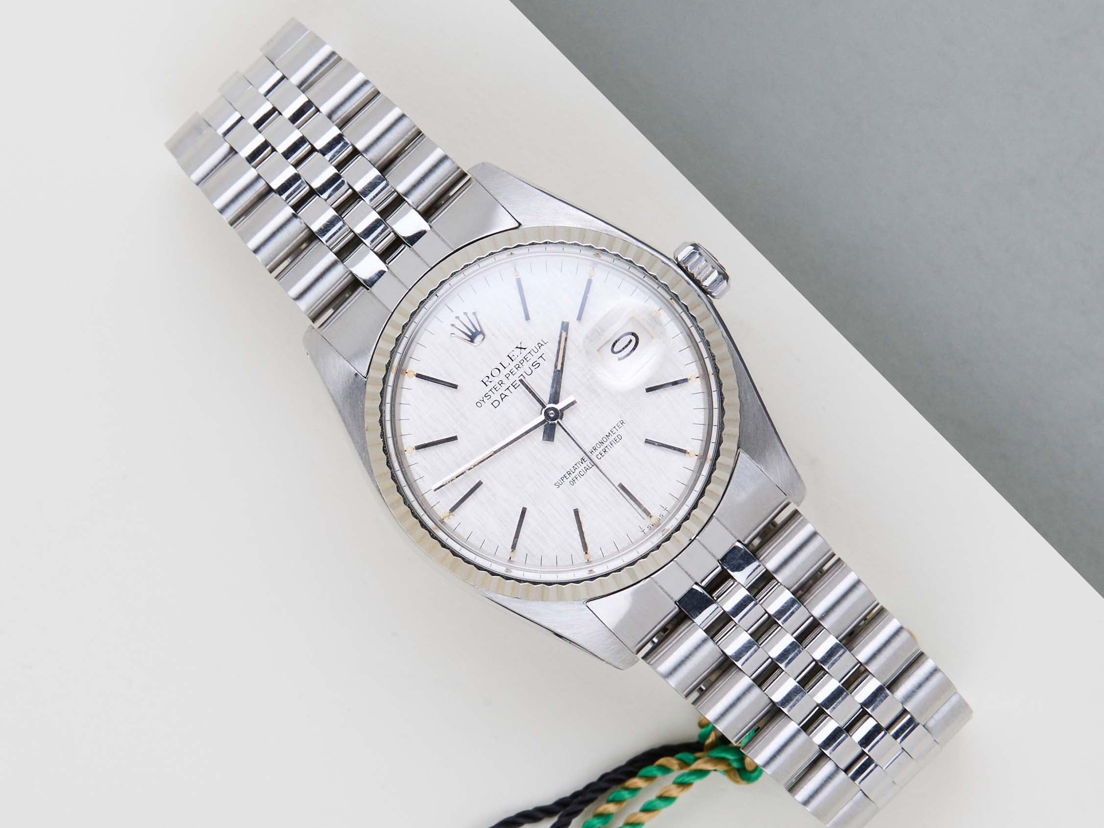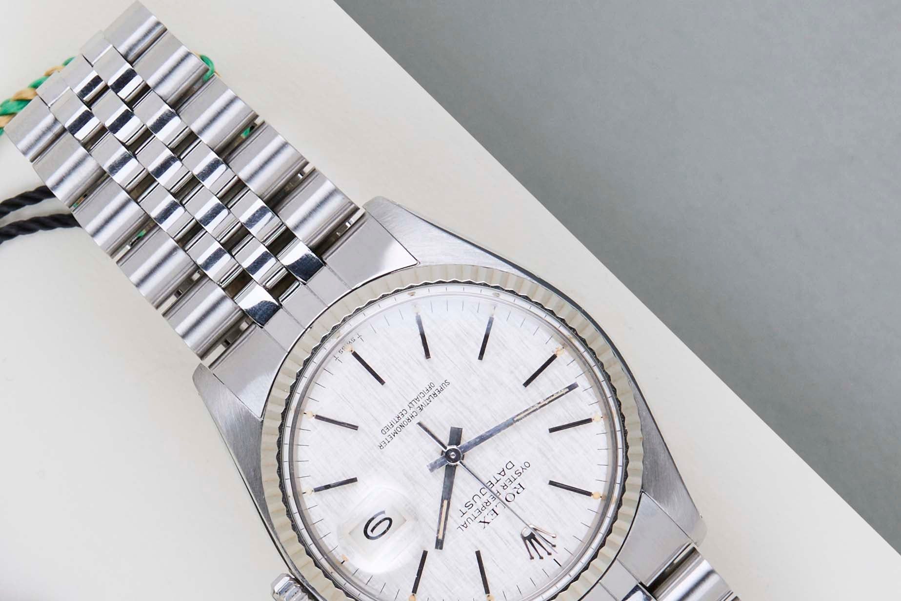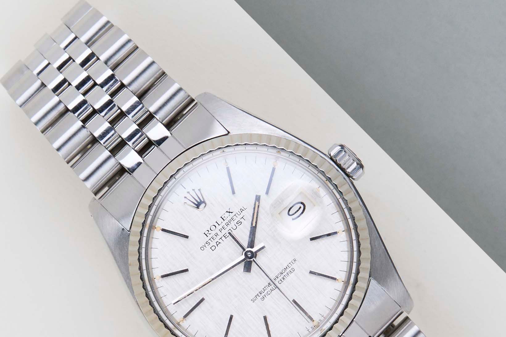 Clasp Code L12 | Endlink Code 555 | Bracelet Code 62510H Rolex introduced the original Datejust in 1945 to celebrate the company's 40th anniversary. Due to the various case sizes and materials, the Datejust has been ingrained in Rolex's history and remains incredibly popular for 75 years.This Datejust is made of a combination of 18k White Gold and stainless steel and is fitted with a Jubilee bracelet. This 16014 is equipped with an original T Swiss T 'Silver Linen' Dial. In addition, the Datejust is equipped with an open 6 & 9 Date Wheel. The main benefit of a 16014 over a 1601 is the quick-set function for the date.This Rolex Datejust 36 is in mint condition. Furthermore, the watch has been serviced by our watchmaker, and therefore it comes with one year of Steiner warranty.