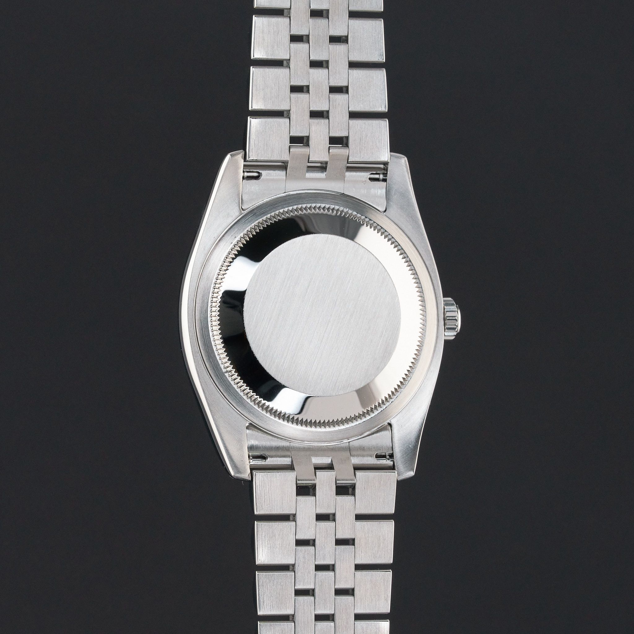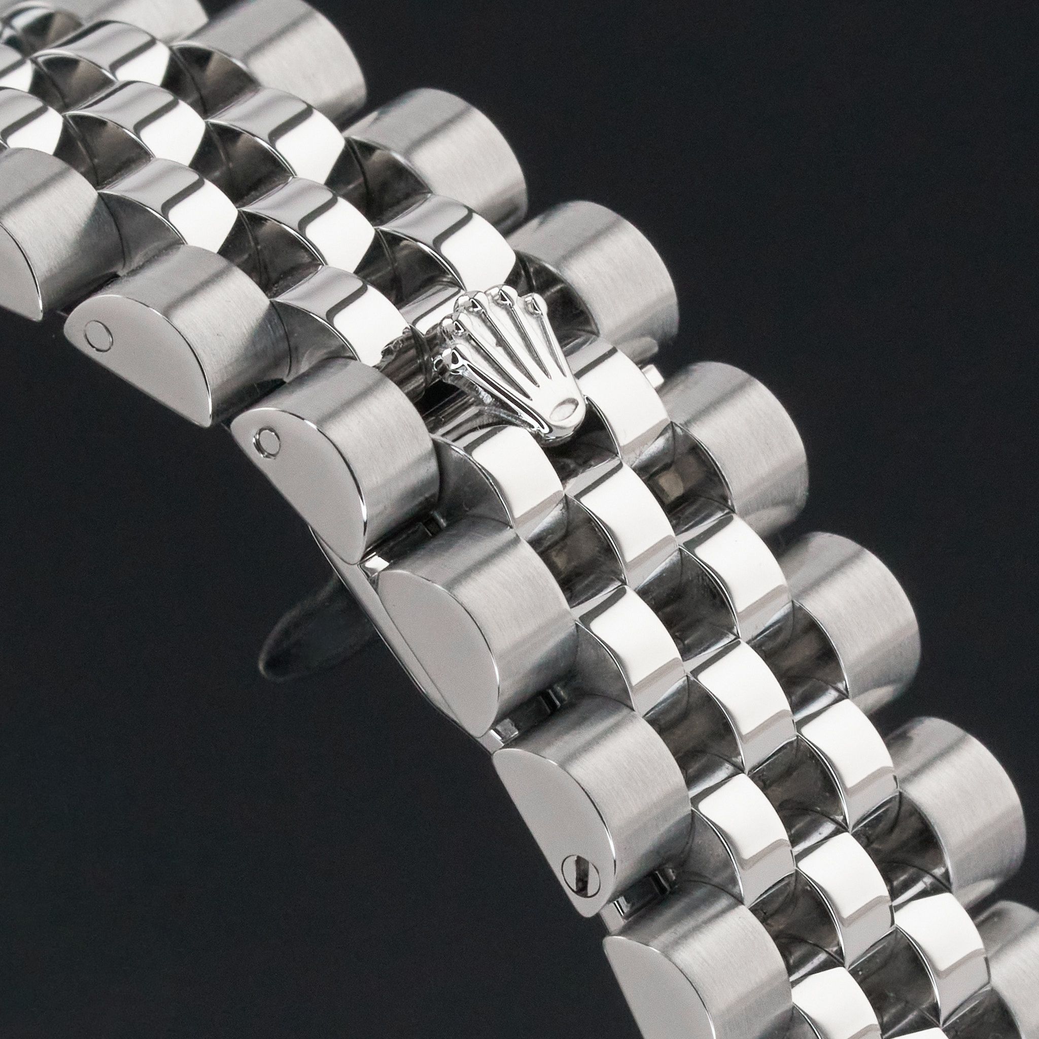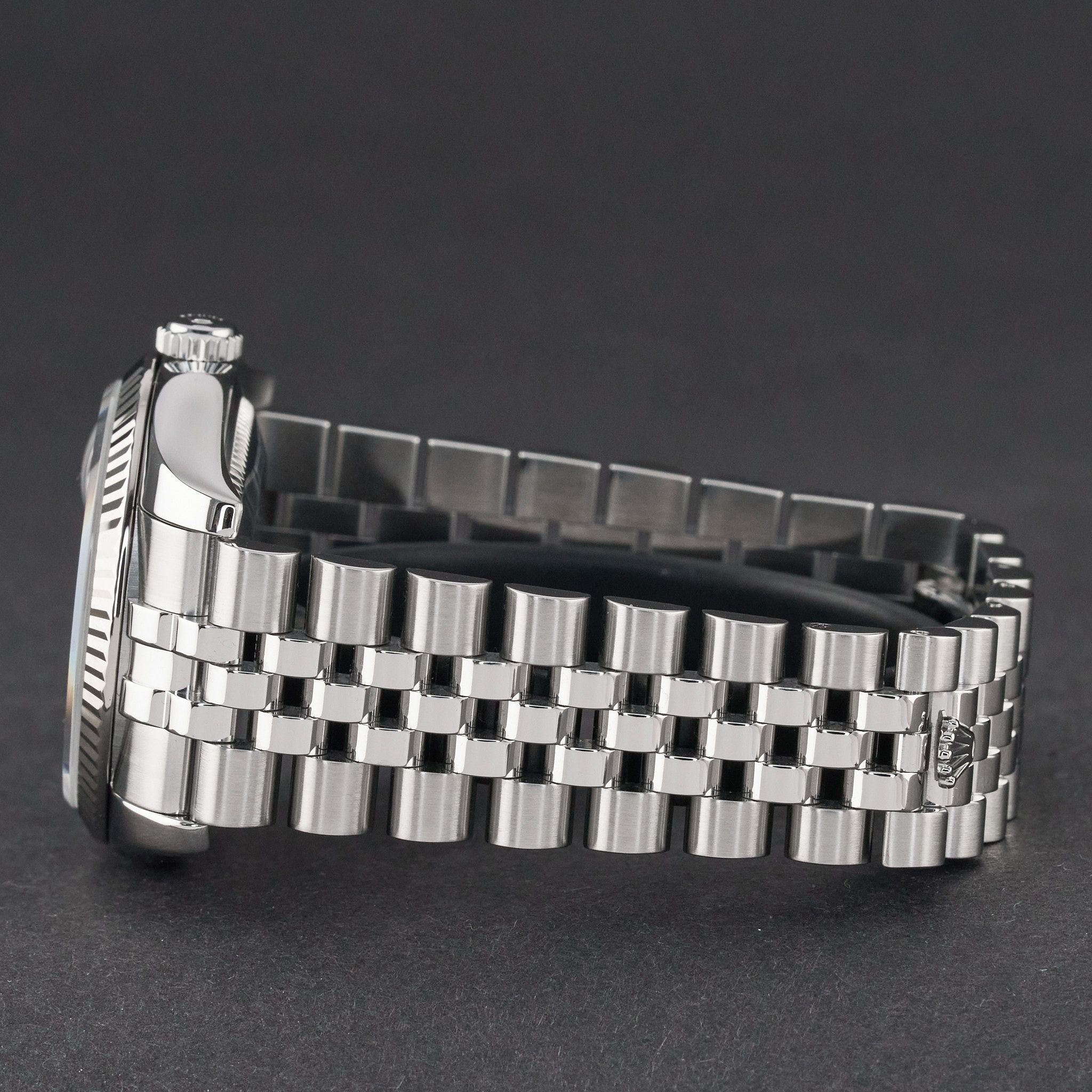 Questo Rolex Datejust 116234 presenta un quadrante in madreperla argentata con numeri arabi ed è realizzato in acciaio inossidabile, con anno di produzione 2006.