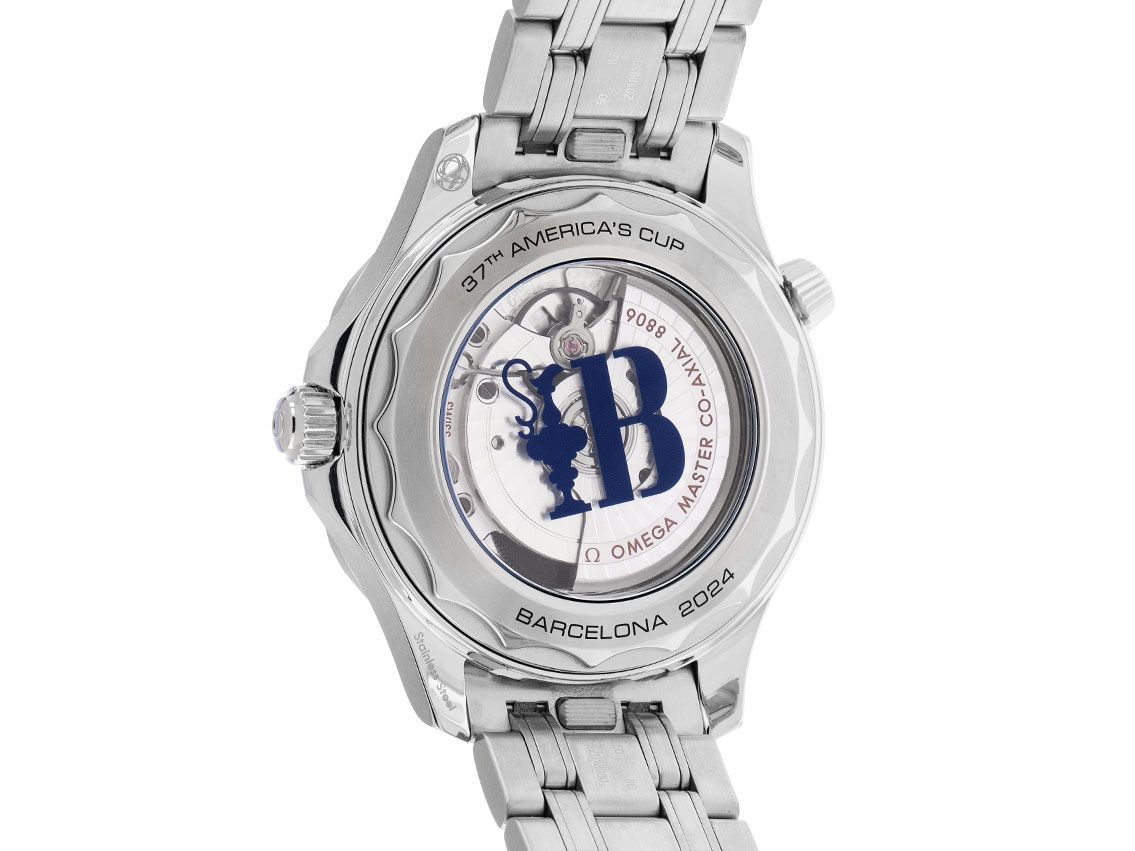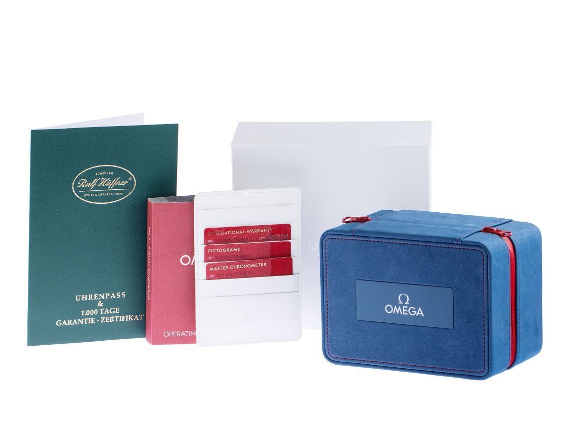 Gehäuse Edelstahl poliert und satiniert, Gehäusedurchmesser ohne Krone 42mm, Gehäusehöhe 13,8mm. Lünette Edelstahl mit blauem Keramik Inlay, Regatta-Skala die aus zwei 5-Minuten-Bereichen für den Countdown vor dem Start und einem START-Bereich mit Regatta-Flagge besteht und Leuchtpunkt, einseitig drehbar. Heliumventil bei 10 Uhr. Armband Edelstahl, Sicherheitsfaltschließe Edelstahl mit Hersteller-Logo. Zifferblatt Keramik weiß matt mit lasergraviertem Wellendekor, aufgesetzten Leuchtindexen und Leuchtpunkten sowie skelettierten gebläuten Leuchtzeigern, Sekundenzeiger weist als Gegengewicht die Trophäe des America’s Cup. Uhrwerk Automatik, Chronometer mit Zeugnis, Omega Manufakturkaliber 8806 mit 35 Edelsteinen, Co-Axial Hemmung, Gangreserve ca. 55 Stunden. Anzeige von Stunde, Minute und Sekunde über Zeiger aus der Mitte mit Sekundenstopp zur sekundengenauen Einstellung der Uhrzeit. Saphirglas kratzfest, gewölbt und doppelseitig entspiegelt. Krone verschraubbar mit Flankenschutz und Hersteller-Logo. Boden Edelstahl verschraubt und graviert mit Saphirglas Sichtfenster und das charakteristische blaue Logo mit dem „Auld Mug“ und dem „B“ für Barcelona. Gewicht der Uhr inklusive Armband 197g, Länge des Armbandes inklusive Gehäuse 210mm. Wasserdicht bis 30 ATM. Referenznummer: 210.30.42.20.04.002, ID: ST1160100760326H-7100, Artikelnummer: 10000085028. Original Omega Box mit Umkarton und Garantie Papiere von Februar 2026 sowie Beschreibung, Full Set. Ungetragen. Lieferzeit sofort.