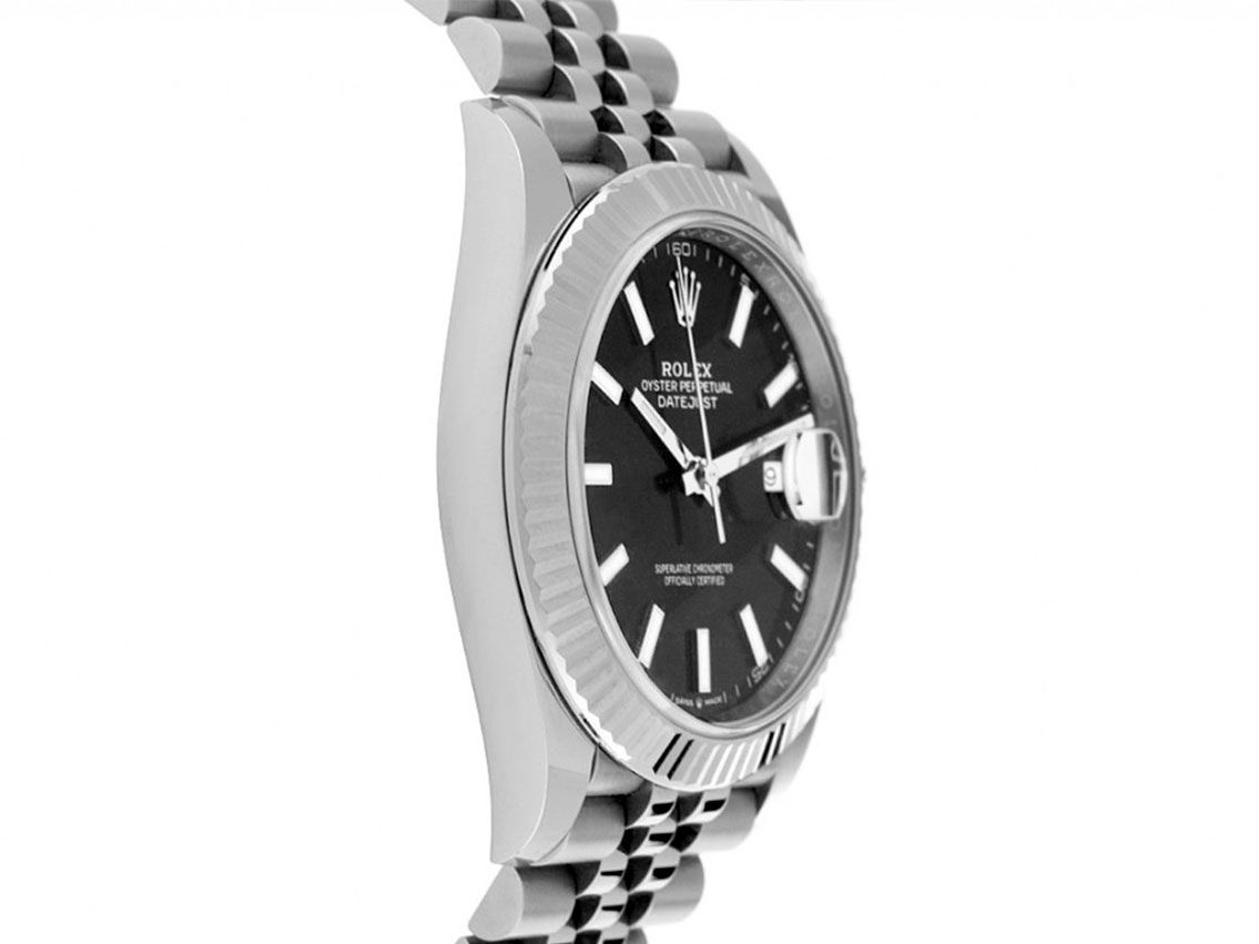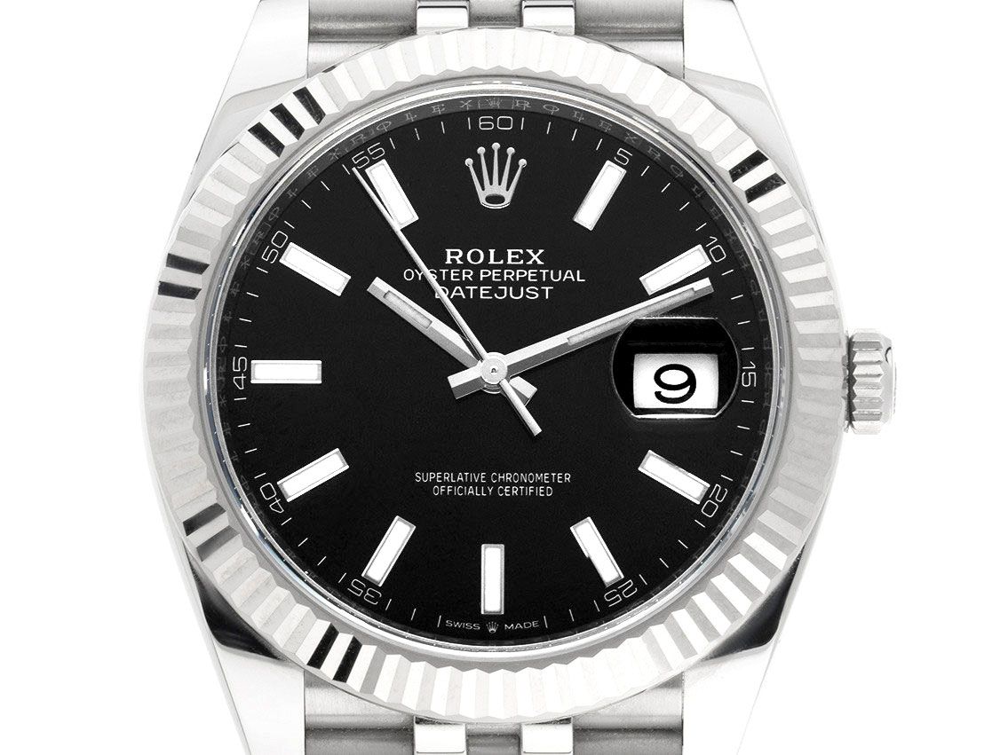 Rolex Datejust Stahl 18kt Weißgold Automatik Armband JubiléGehäuse Edelstahl poliert und satiniert, Gehäusedurchmesser ohne Krone 41mm, Gehäusehöhe 11,6mm. Lünette 18kt Weißgold geriffelt und poliert. Armband Jubilé Edelstahl poliert und satiniert, Rolex Faltschließe Edelstahl mit Hersteller-Logo. Zifferblatt schwarz mit aufgesetzten in Weißgold gefassten Leuchtindexen und weißgoldenen Leuchtzeigern. Uhrwerk Automatik, Chronometer mit Zeugnis, Rolex Manufakturkaliber 3235 mit 31 Edelsteinen, Gangreserve ca. 70 Stunden. Anzeige von Stunde, Minute und Sekunde über Zeiger aus der Mitte mit Sekundenstopp zur sekundengenauen Einstellung der Uhrzeit, Datumsanzeige mit Schnellverstellung unter Glaslupe bei 3 Uhr. Saphirglas kratzfest. Krone verschraubbar mit Hersteller-Logo. Boden Edelstahl verschraubt. Gewicht der Uhr inklusive Armband 133g, Länge des Armbandes inklusive Gehäuse 180mm. Wasserdicht bis 10 ATM. Referenznummer: 126334, ID: P2632220120326HW-16900/11450, Artikelnummer: 10000085031. Original Rolex Box mit Umkarton und Garantie Papiere von Mai 2024, neue Rolex Garantie Karte ohne Ländercode sowie Beschreibung, Ledermäppchen, Rolex Chronometer-Siegel und Watchregister Auszug von März 2026, The Watch Register Zertifikat / ohne Eintrag (Internationale Datenbank für verlorene oder gestohlene Uhren), inkl. Erstkaufrechnung, Full Set. Kapitalanlage mit Wertsteigerungspotential. Ungetragen. Lieferzeit sofort.