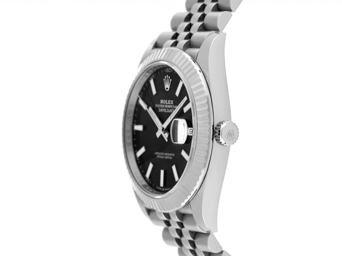 Cassa in acciaio lucido e satinato, diametro della cassa senza corona 41mm, altezza della cassa 11,6mm. Lunetta in oro bianco 18kt zigrinata e lucida. Bracciale Jubilé in acciaio lucido e satinato, chiusura pieghevole Rolex in acciaio con logo del produttore. Quadrante nero con indici luminosi incassati in oro bianco e lancette luminose in oro bianco. Movimento automatico, cronometro con certificato, calibro Rolex 3235 con 31 rubini, riserva di carica di circa 70 ore. Indicazione di ore, minuti e secondi tramite lancette centrali con fermo secondi per la regolazione precisa dell'ora, indicazione della data con regolazione rapida sotto lente di ingrandimento alle 3. Vetro zaffiro antigraffio. Corona a vite con logo del produttore. Fondello in acciaio avvitato. Peso dell'orologio incluso il bracciale 133g, lunghezza del bracciale incluso la cassa 180mm. Impermeabile fino a 10 ATM. Numero di riferimento: 126334, ID: P2632220120326HW-16900/11450, numero articolo: 10000085031. Scatola originale Rolex con confezione esterna e documenti di garanzia di maggio 2024, nuova carta di garanzia Rolex senza codice paese e descrizione, astuccio in pelle, sigillo di cronometro Rolex e estratto del Watch Register di marzo 2026, certificato The Watch Register / senza registrazione (database internazionale per orologi smarriti o rubati), incluso fattura di acquisto originale, Full Set. Investimento con potenziale di apprezzamento. Mai indossato. Tempi di consegna immediati.