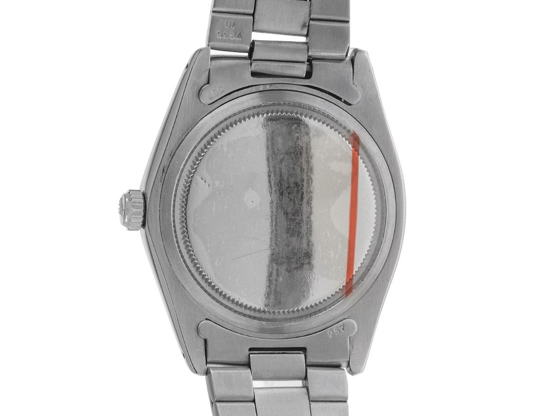 Cassa in acciaio lucido e satinato, diametro della cassa senza corona 35mm, altezza della cassa 11,7mm. Lunetta in acciaio liscia e lucida. Bracciale Oyster in acciaio piegato, lucido e satinato, chiusura pieghevole in acciaio con logo del produttore. Quadrante argentato con indici in oro giallo applicati e lancette in oro giallo. Movimento manuale, calibro Rolex 1225 con 17 rubini. Indicazione di ore, minuti e secondi tramite lancette centrali, visualizzazione della data sotto lente d'ingrandimento alle 3, open 6/9 (sei e nove aperti nella visualizzazione della data). Plexiglass. Corona a vite con logo del produttore. Fondello in acciaio avvitato. Peso dell'orologio incluso il bracciale 66g, lunghezza del bracciale incluso la cassa 175mm. Numero di riferimento: 6694, numero di cassa: 3851XXX, anno di produzione: 1975, ID: P249853000226H-6100, numero articolo: 10000084758. Con controllo del movimento e completa revisione esterna di marzo 2026. Scatola originale Rolex con scatola esterna e descrizione, libretto di traduzione, astuccio in pelle, tag, certificato di cronometro Rolex e estratto dal Watch Register di febbraio 2026, certificato The Watch Register / senza iscrizione (database internazionale per orologi smarriti o rubati). Super affare, investimento con potenziale di apprezzamento, quasi mai indossato. Ottime condizioni. Tempi di consegna immediati.