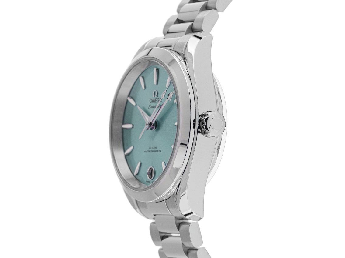 Cassa in acciaio inox lucido e satinato, diametro della cassa senza corona 34mm, altezza della cassa 11,9mm. Lunetta in acciaio lucido e liscio. Bracciale in acciaio lucido e satinato, chiusura pieghevole a doppia sicurezza in acciaio con logo del produttore. Quadrante verde laguna con indici e lancette in oro bianco luminescenti applicati. Movimento automatico, cronometro con certificato, calibro Omega 8800 con 35 rubini, riserva di carica di circa 55 ore. Indicazione di ore, minuti e secondi tramite lancette centrali con fermo secondi per la regolazione precisa dell'ora, indicazione della data con regolazione rapida a ore 6. Vetro zaffiro antigraffio, curvo e antiriflesso su entrambi i lati. Corona con logo del produttore. Fondello in acciaio avvitato e inciso con vetro zaffiro trasparente. Peso dell'orologio incluso il bracciale 101g, lunghezza del bracciale incluso la cassa 165mm. Impermeabile fino a 15 ATM. Numero di riferimento: 220.10.34.20.10.001, ID: ST1160105680326H-7200, numero articolo: 10000085023. Scatola originale Omega con confezione esterna e documenti di garanzia di febbraio 2026, Full Set. Mai indossato. Tempi di consegna immediati.