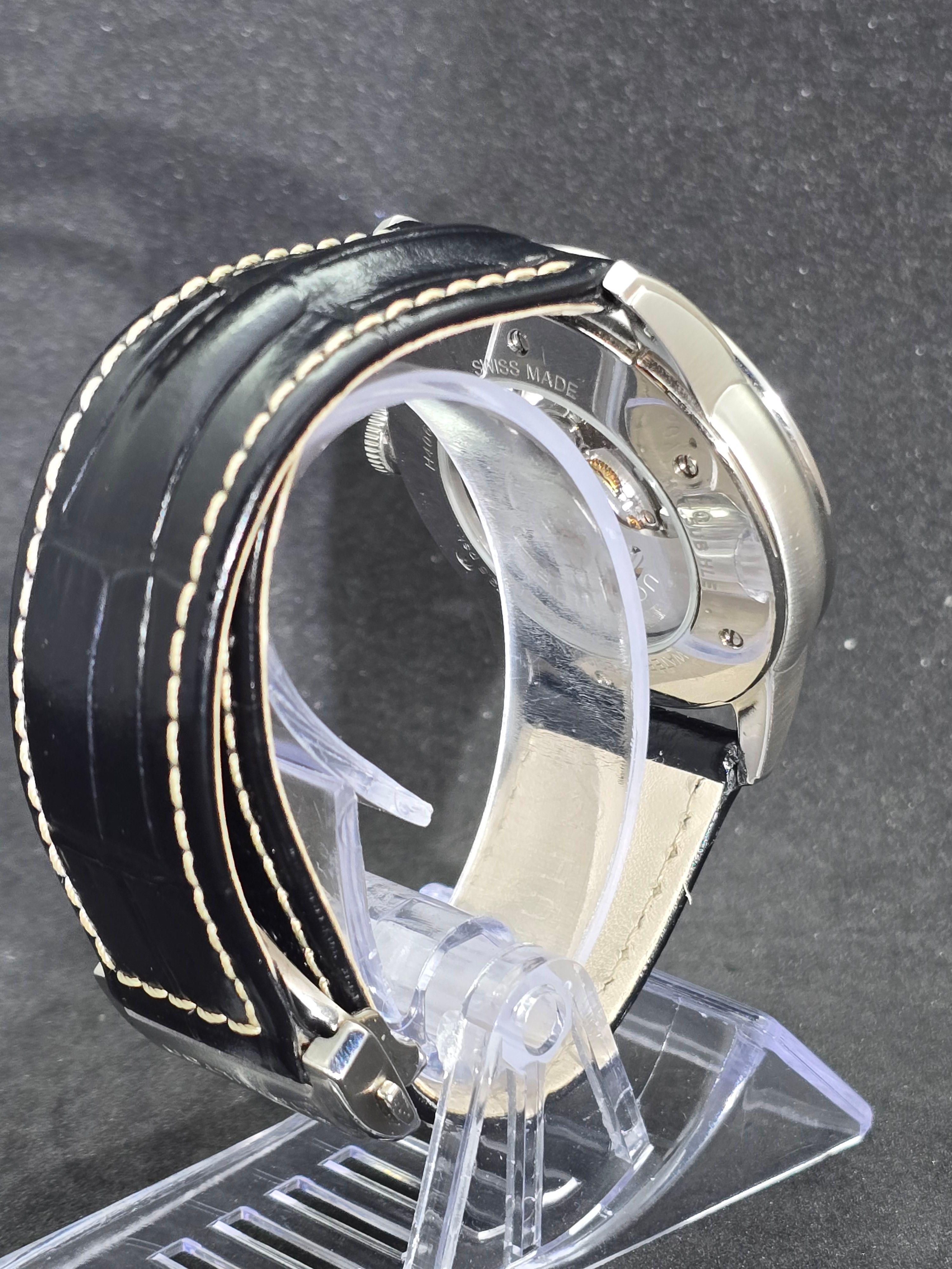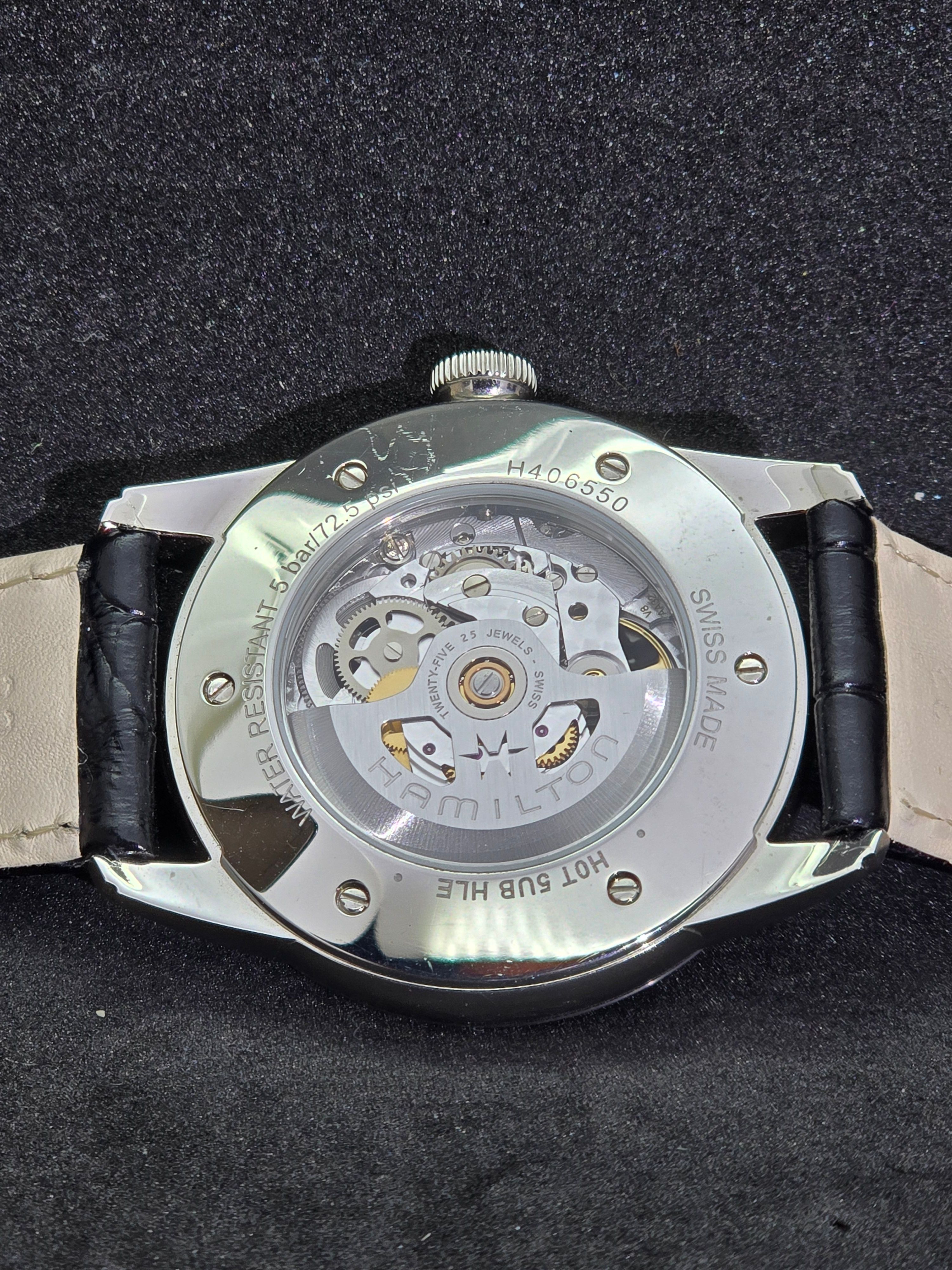 Alimentato da un affidabile movimento automatico svizzero, il Hamilton Railroad Skeleton offre maestria meccanica e profondità visiva, rendendolo un pezzo attraente per gli appassionati che apprezzano la meccanica dell'orologeria esposta.