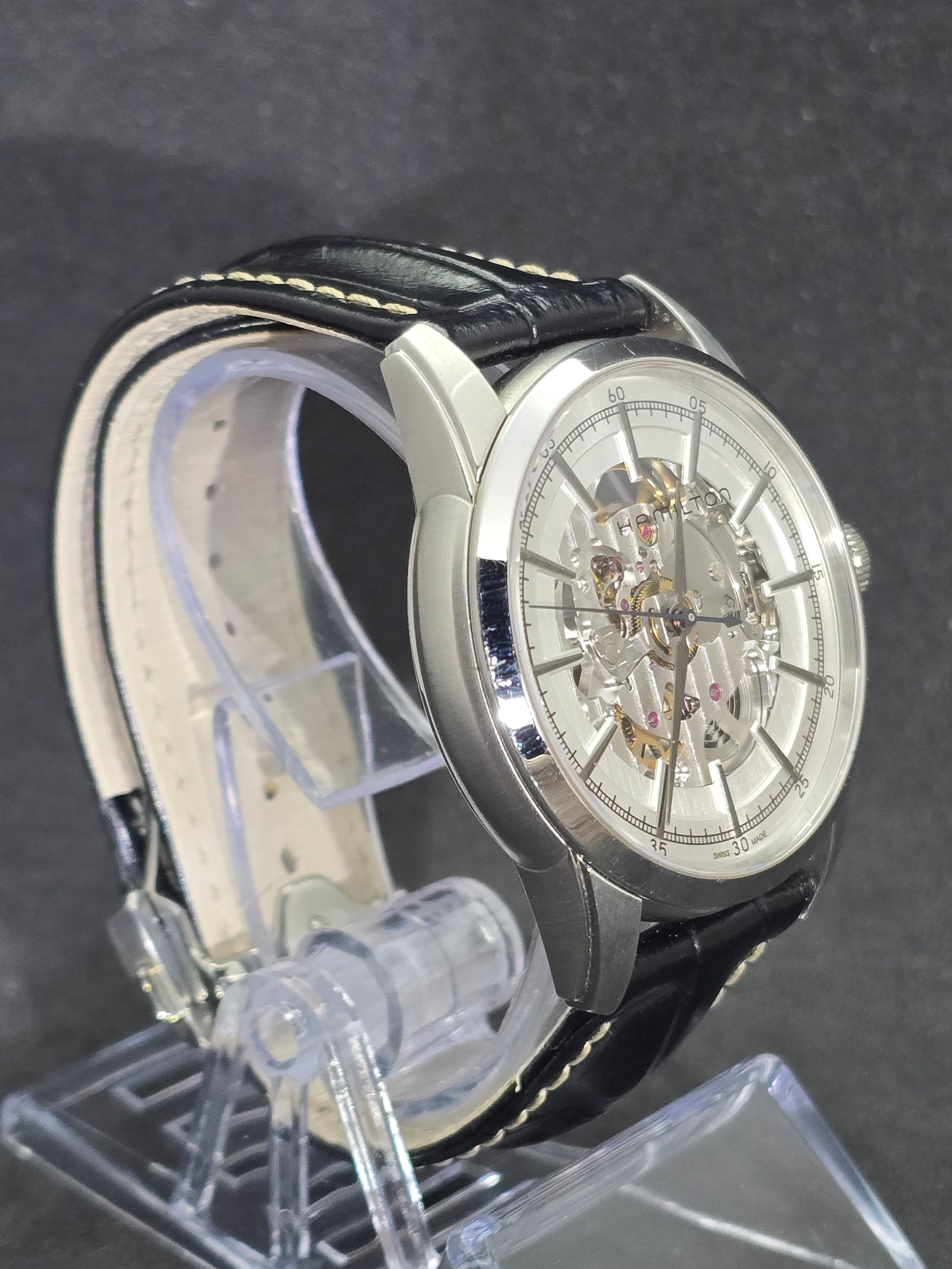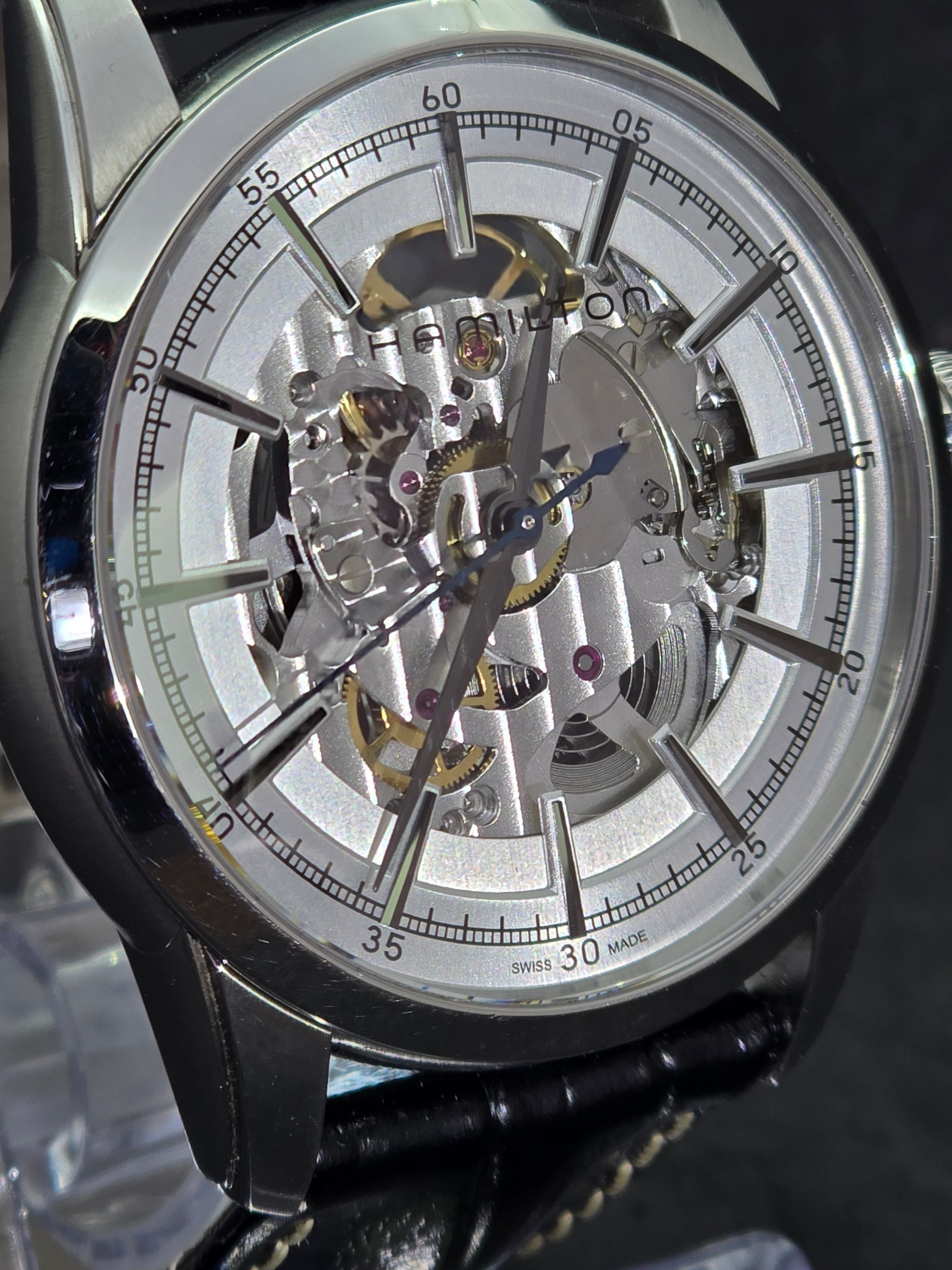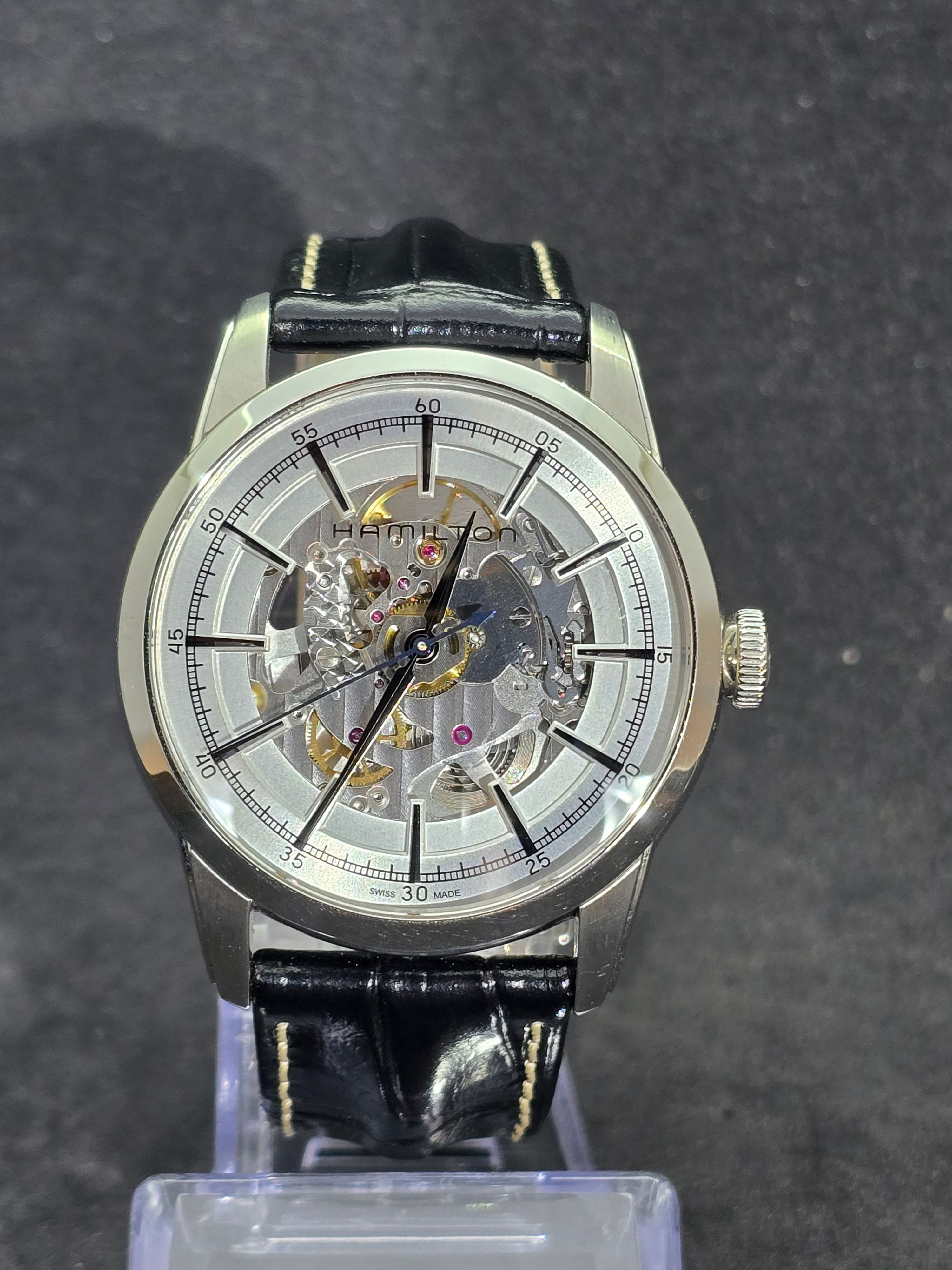 Hamilton Railroad Skeleton Automatic – H40666751 - Openworked Dial – Full SetThe Hamilton American Classic Railroad Skeleton Automatic showcases Hamilton’s balance of traditional American design heritage and modern Swiss watchmaking. Inspired by the historic precision watches used by American railroad engineers, this model presents a contemporary interpretation with a striking openworked display.