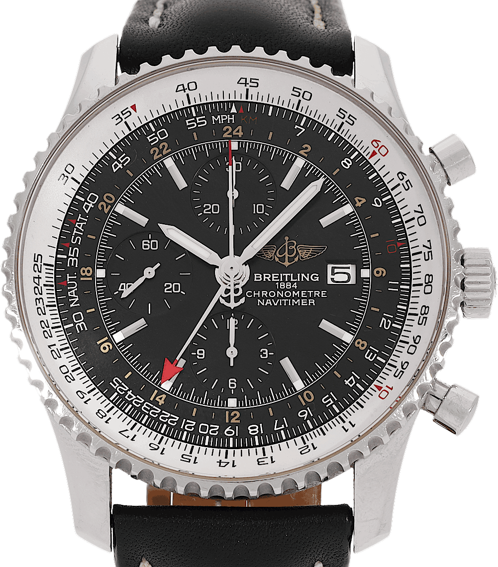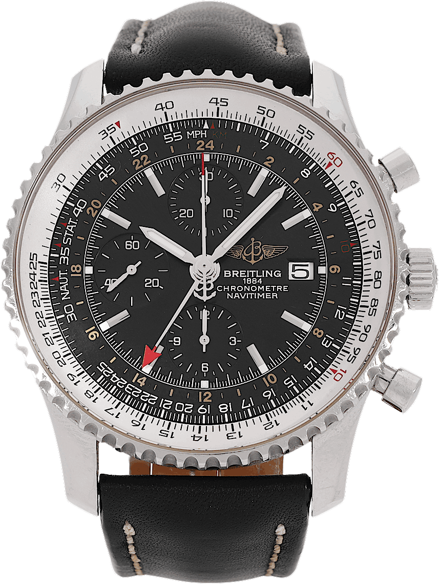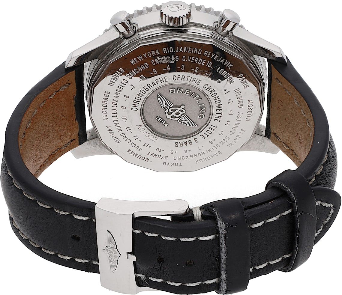 Breitling Navitimer, Reference: A2432212.C651.442X.A20D.1, Gender: Male, Size: 45mm, Dial color: Black, Strap material: Calf Leather, Movement: Automatic, Year: 2013, Condition: Previously worn, minor to no signs of usage. The movement is flawless and the case has been cleaned. watch tested ensure full functionality. An inspection by our certified watchmakers guarantees its authenticity., Documents: Original papers, CHRONEXT Certificate