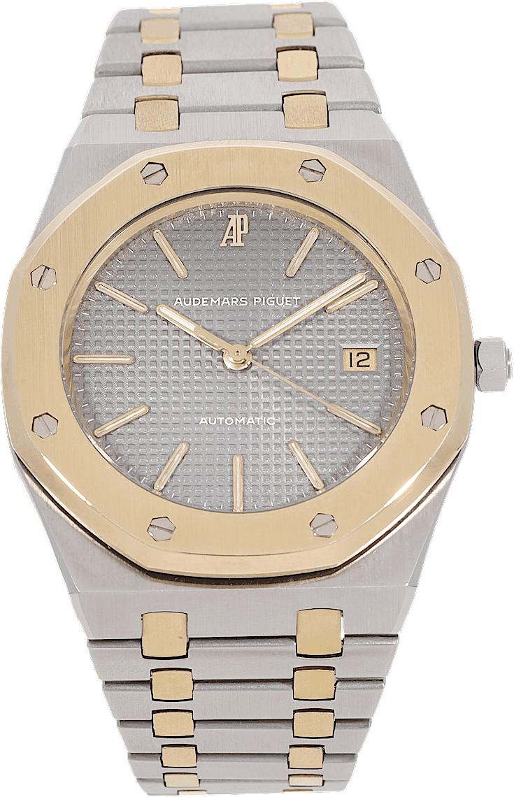 Audemars Piguet Royal Oak, Reference: 14486SA, Gender: Unisex, Size: 35mm, Dial color: Grey, Strap material: Stainless Steel Yellow Gold, Movement: Automatic, Condition: Previously worn with some signs of usage. The movement is flawless and the case has been cleaned. watch tested to ensure full functionality. An inspection by our certified watchmakers guarantees its authenticity., Documents: Original papers, CHRONEXT Certificate