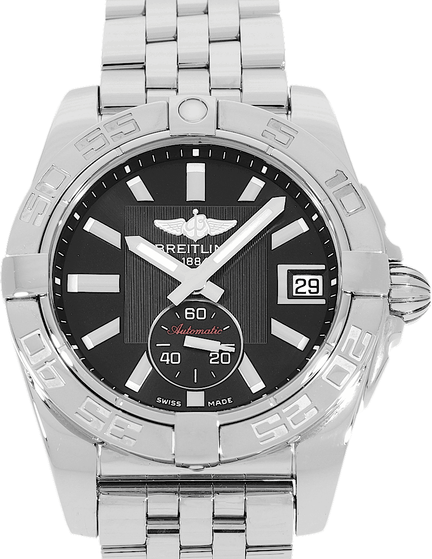 Breitling Galactic 36 Automatic, Reference: a37330, Gender: Unisex, Size: 36mm, Dial color: Black, Strap material: Stainless Steel, Movement: Year: 2012, Condition: Previously worn with some signs of usage. The movement is flawless and the case has been cleaned. watch tested to ensure full functionality. An inspection by our certified watchmakers guarantees its authenticity., Documents: Original papers, CHRONEXT Certificate