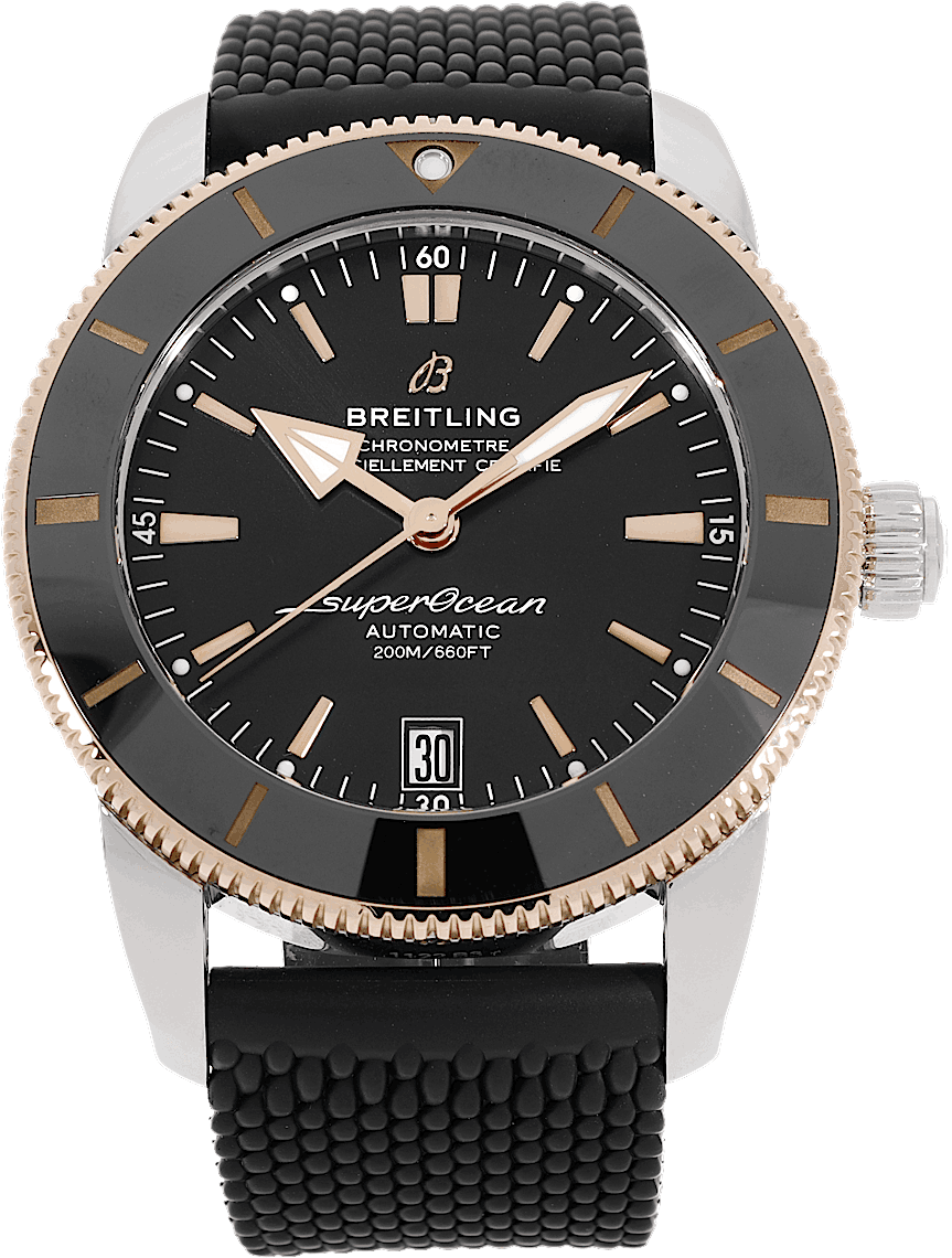 Breitling Superocean, Reference: UB2010, Gender: Male, Size: 42mm, Dial color: Black, Strap material: Rubber, Movement: Automatic, Condition: Previously worn, minor to no signs of usage. The movement is flawless and the case has been cleaned. watch tested ensure full functionality. An inspection by our certified watchmakers guarantees its authenticity., Documents: Original papers, CHRONEXT Certificate