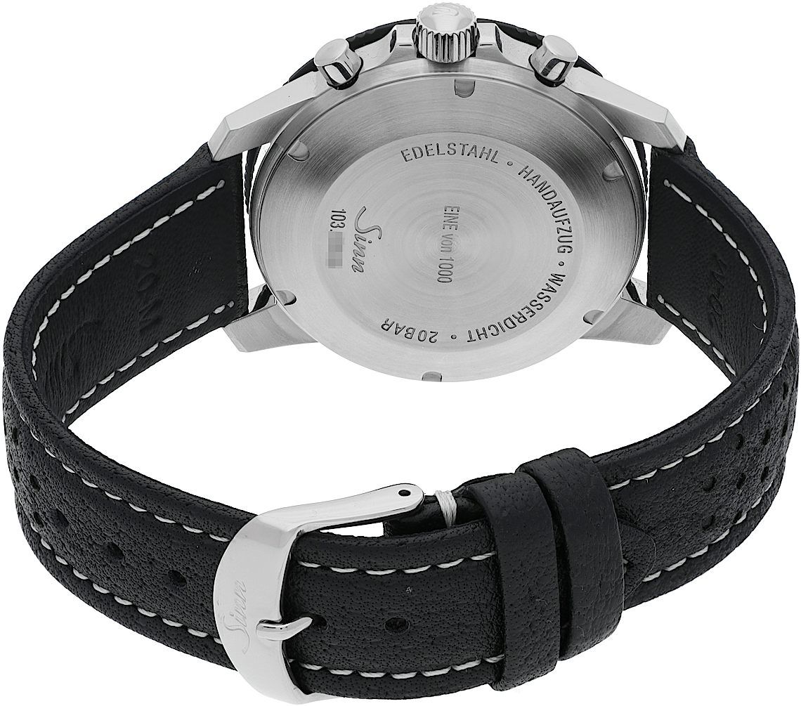 Sinn 103 St, Reference: 103.40636, Gender: Male, Size: 41mm, Dial color: Black, Strap material: Calf Leather, Movement: Manual Wind, Year: 2024, Condition: Previously worn, minor to no signs of usage. The movement is flawless and the case has been cleaned. watch tested ensure full functionality. An inspection by our certified watchmakers guarantees its authenticity., Documents: Original papers, CHRONEXT Certificate