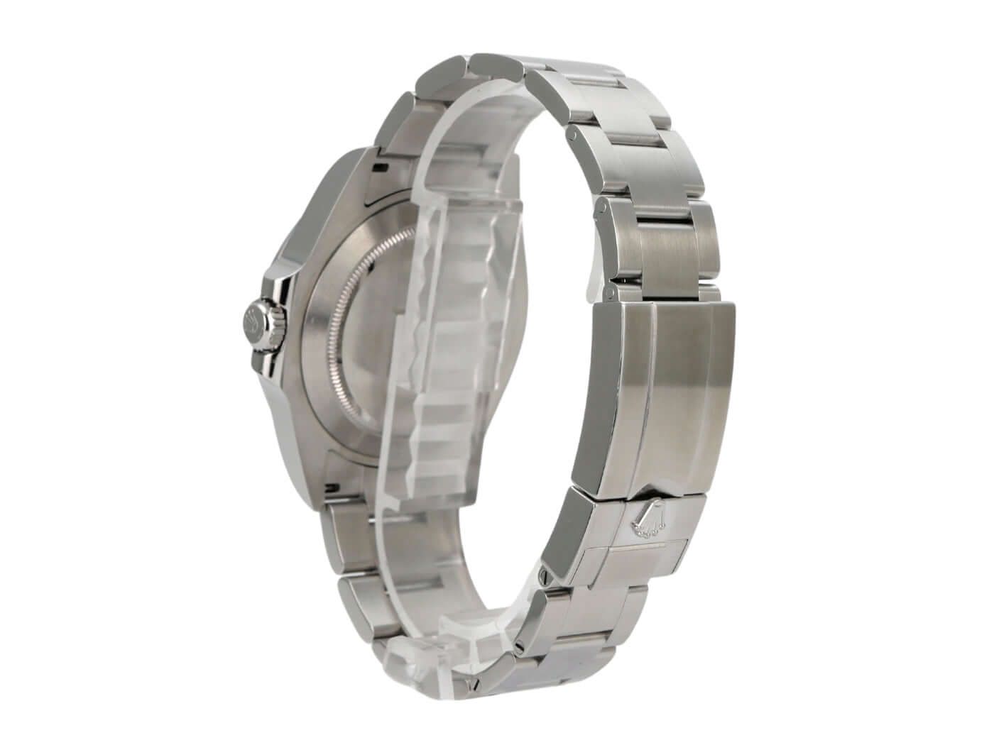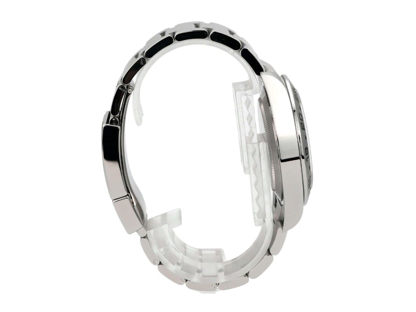 Cassa in acciaio inossidabile lucido e satinato, diametro della cassa 42 mm, altezza della cassa 12,5 mm, lunetta in acciaio inossidabile satinato con scala delle 24 ore, bracciale Oyster in acciaio inossidabile satinato con chiusura pieghevole di sicurezza, quadrante bianco con indici luminosi applicati e punti luminosi, lancette luminescenti, movimento automatico, calibro Rolex 3285 con 31 rubini, 28.800 vibrazioni all'ora, riserva di carica di 70 ore, indicazione della data, secondo fuso orario, cronometro, vetro zaffiro, corona a vite con protezioni, fondello in acciaio inossidabile a vite, impermeabile fino a 10 bar.