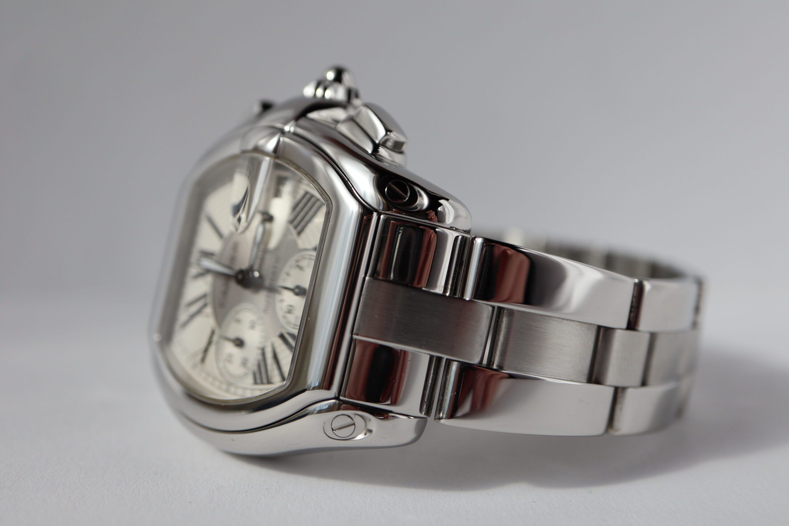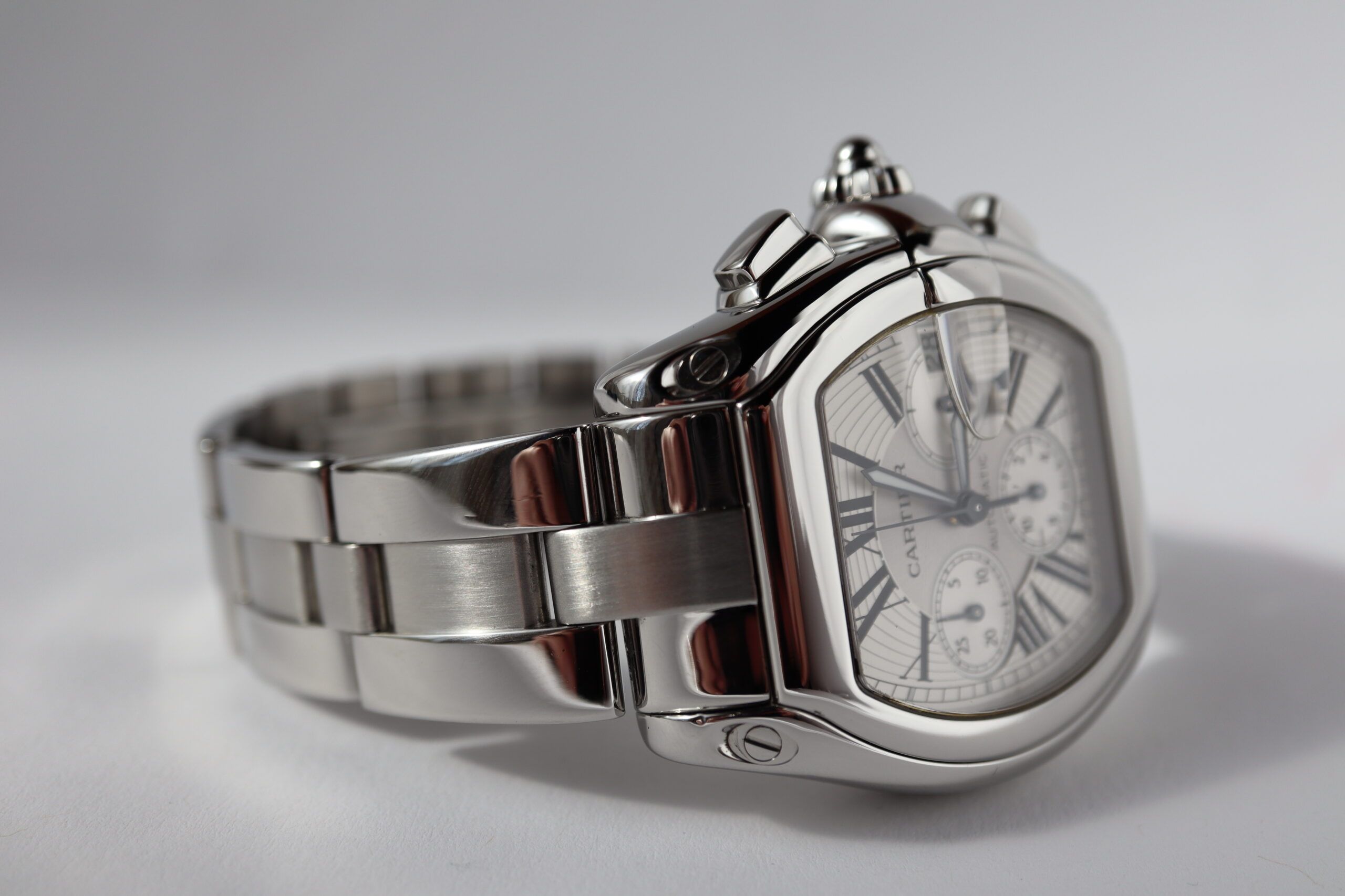 Il Cartier Roadster ha un aspetto iconico con una cassa a forma di tonneau (tonneau significa "barile" in francese), una forma utilizzata da Cartier intorno al 1906. È stato ispirato dalle auto sportive degli anni '60. È diventato un orologio sportivo e da cerimonia molto popolare.