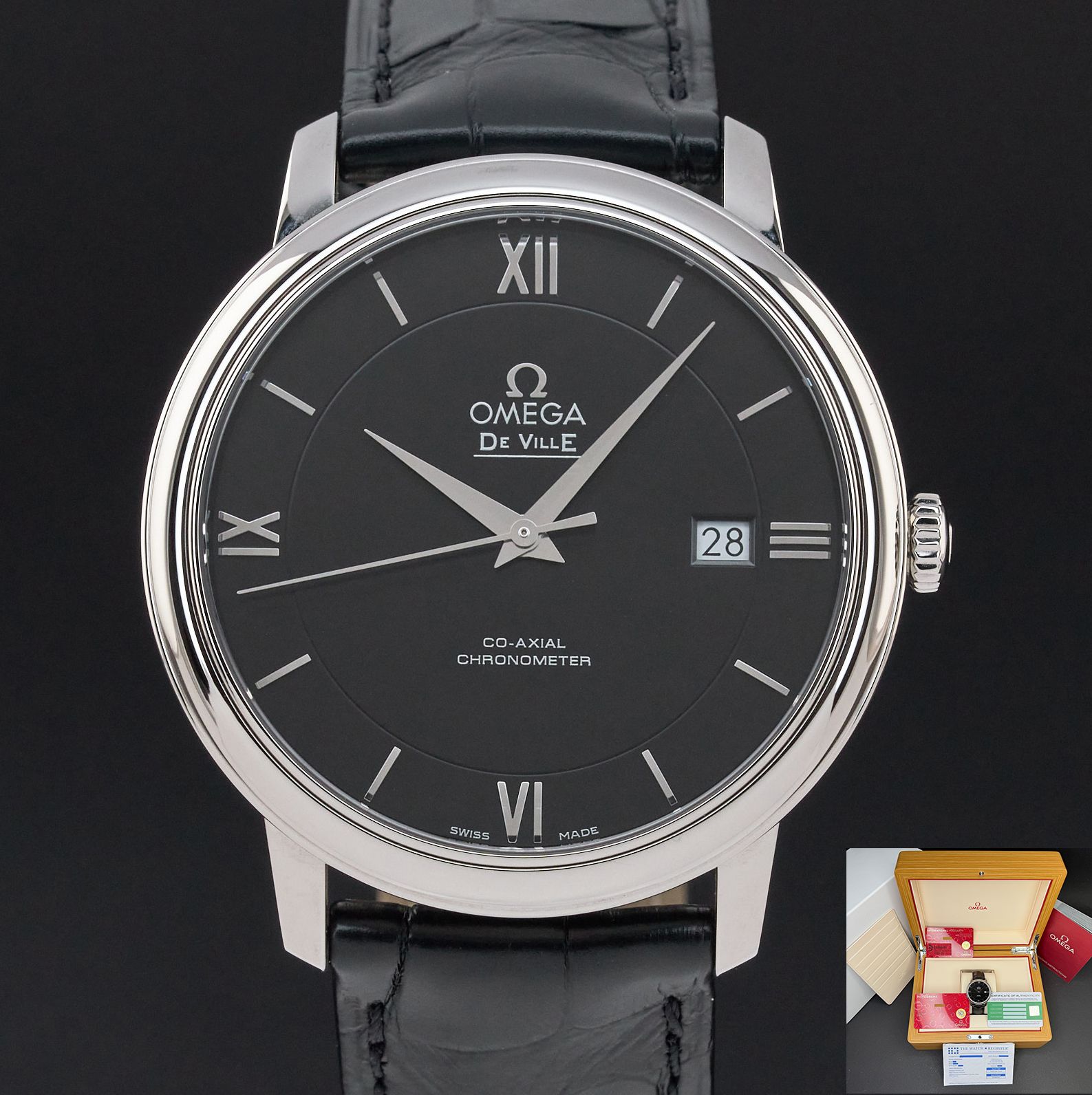 Omega De Ville Prestige Omega De Ville Prestige, 424.13.40.20.01.001, 39.5mm, Steel, Black Roman dial, Fullset, 1y warranty