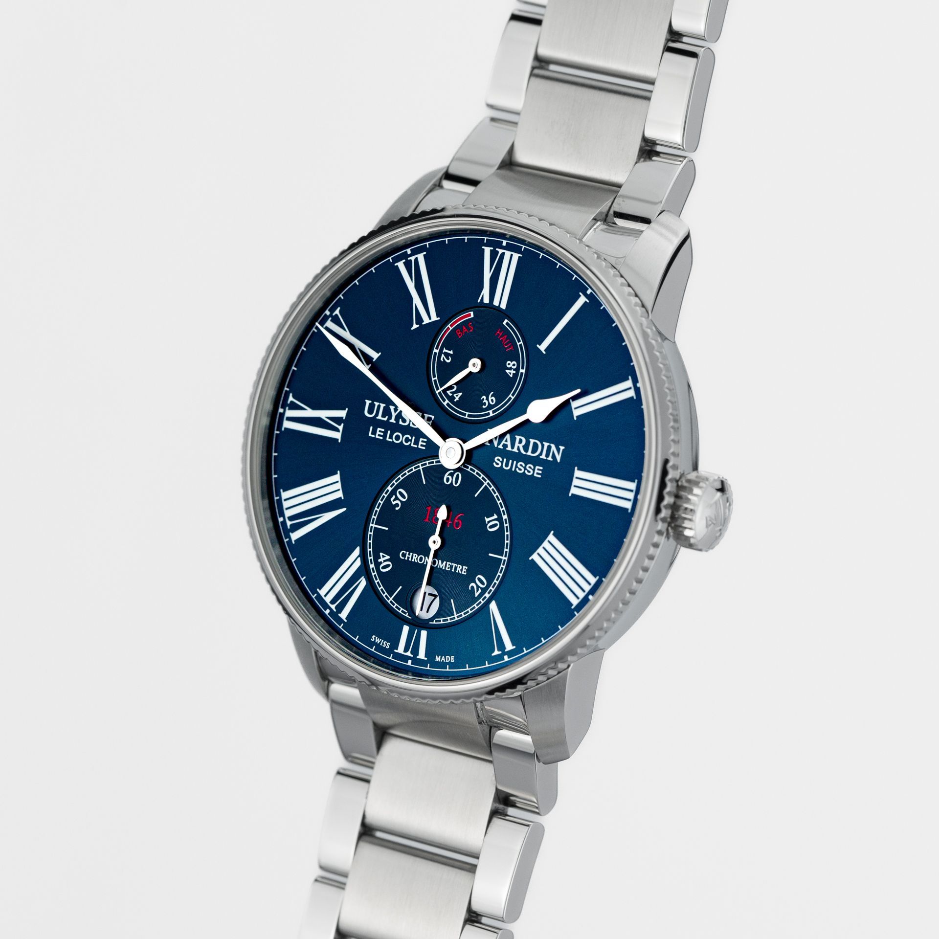 The specific model was first introduced in 2016 and is current in the brand's model range, and this particular example is in the most "maritime"—at least in my opinion—combination with a blue dial with applied Roman numerals and a practical three-link bracelet (those of us who have had to buy a strap for a Ulysse Nardin will especially appreciate the fact that the bracelet will free them from this recurring expense). This timepiece does not have a distinctly modern feel, which most of today's manufacturers aim for in their contemporary models, but is rather sport-elegant and discreetly aristocratic.