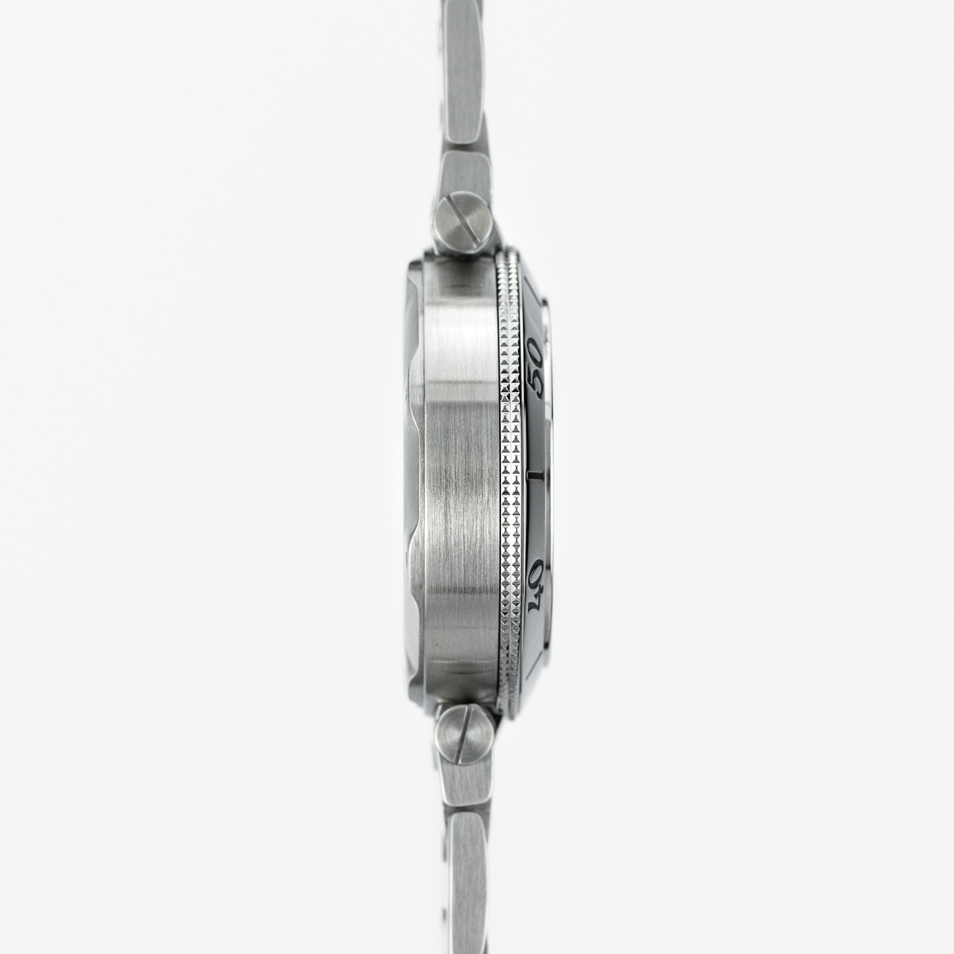 Launched in 2006, it largely differs from the brand's classic design – the dial features Arabic numerals, it lacks an inner scale, the hands are not blued steel, a sapphire cabochon is present on the crown, but it is black.