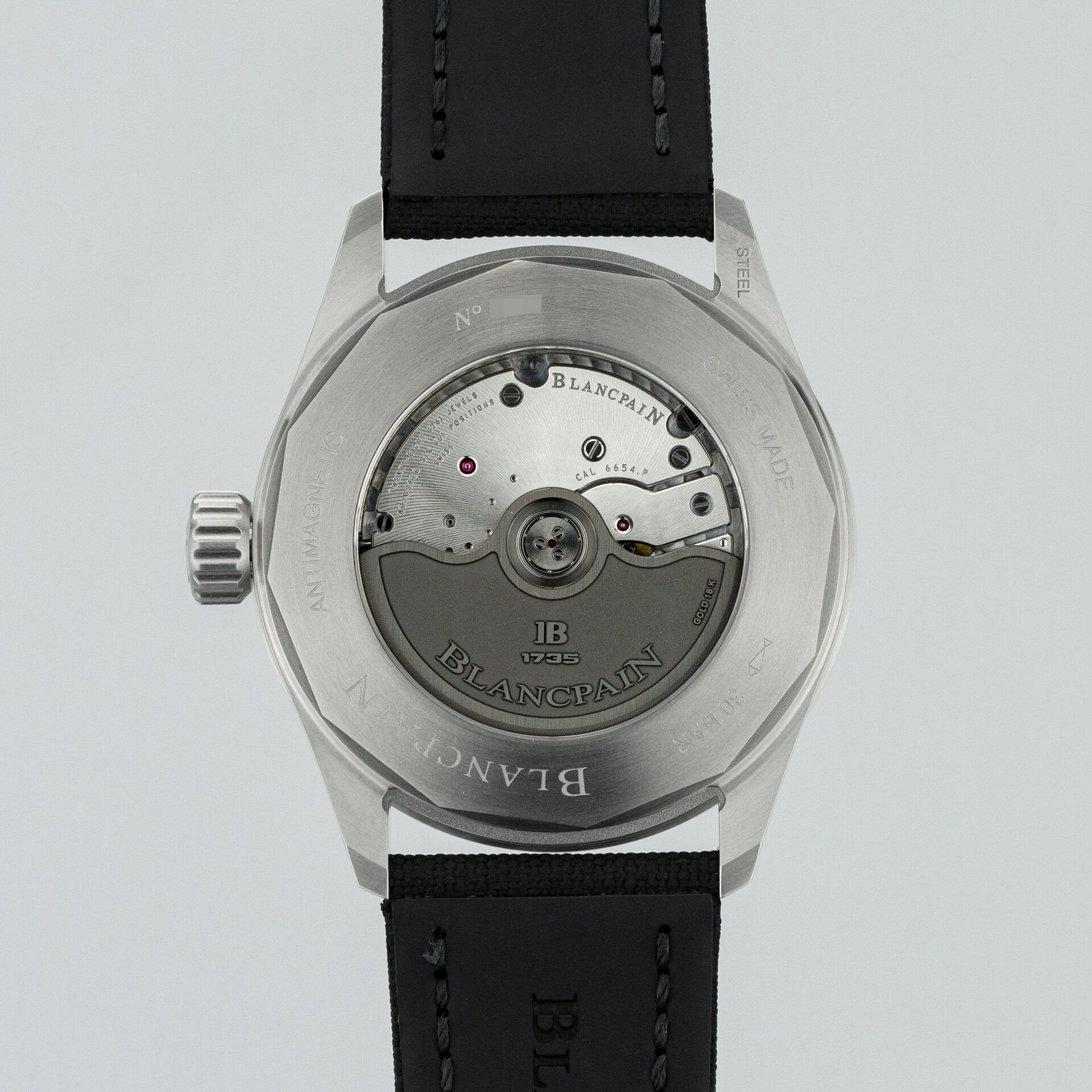 The case back of the watch is transparent, and this gives us the opportunity to enjoy the beautiful mechanics, bearing the name Blancpain Calibre 6654.P.4, an in-house automatic movement with two barrels, a power reserve of over 72 hours, 321 components, and 28 jewels, operating at 4 Hz. And the finishing of the movement is of a very high level and once again answers the question of why this brand is so valuable and valued.