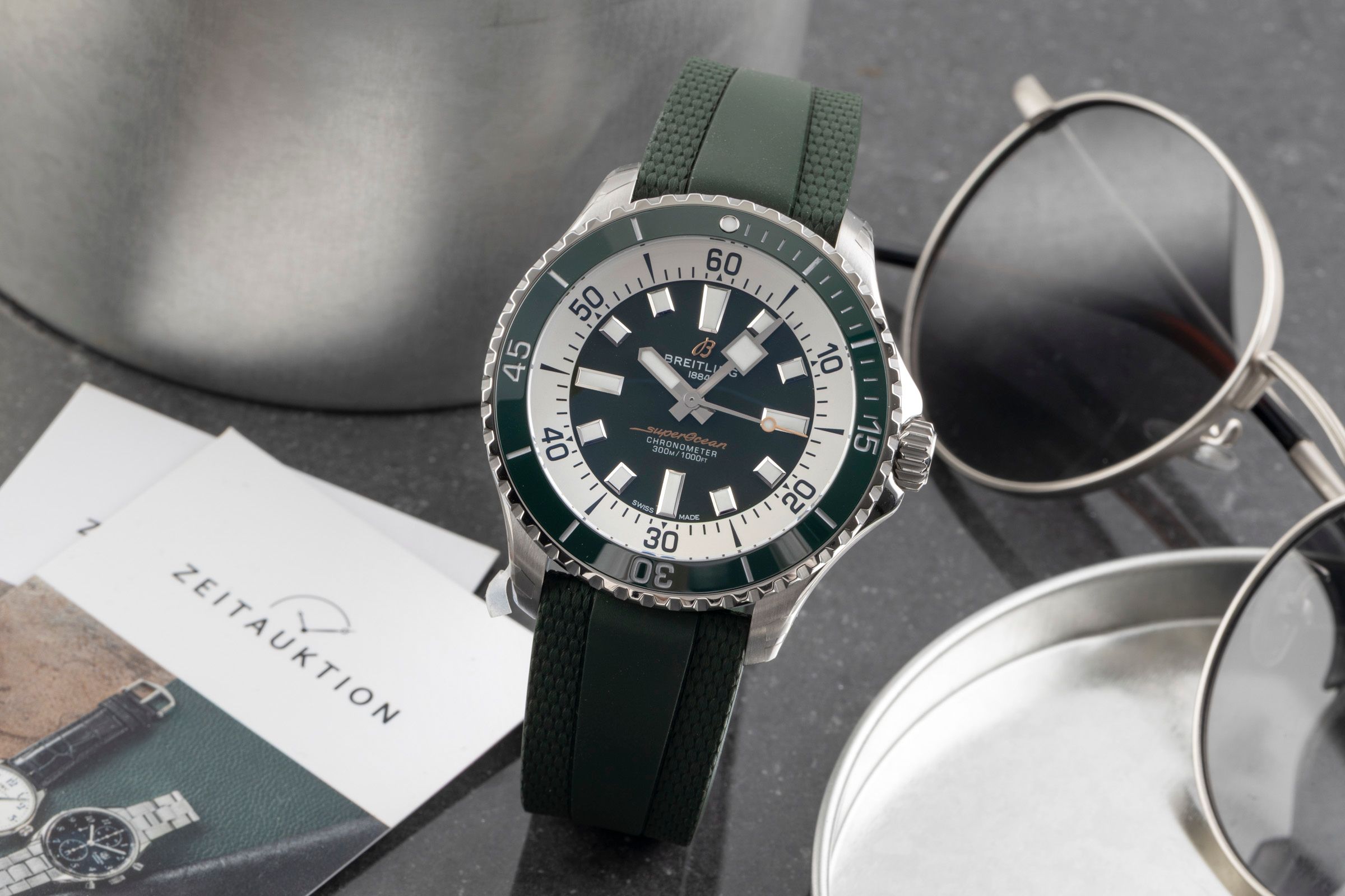 Alternative title: Breitling A17376A31L1S1 - Superocean Automatic Green 44mm; Breitling Superocean Automatik 44Herrenuhr Ref. A17376A31L1S1 B&P NP: 5450,-€ [2601341]