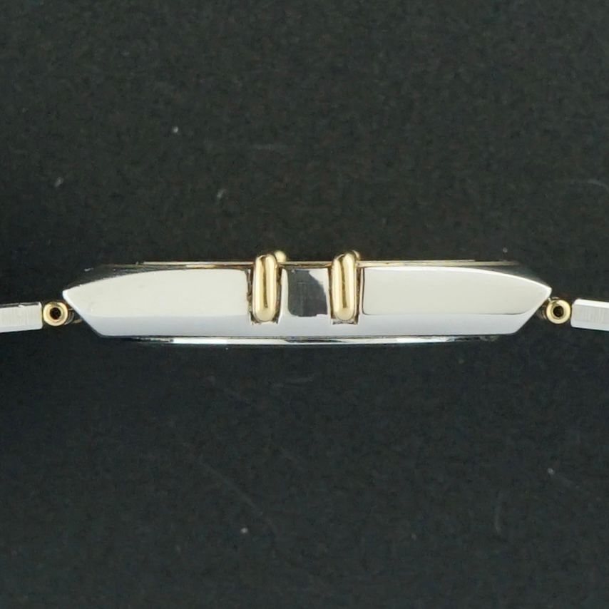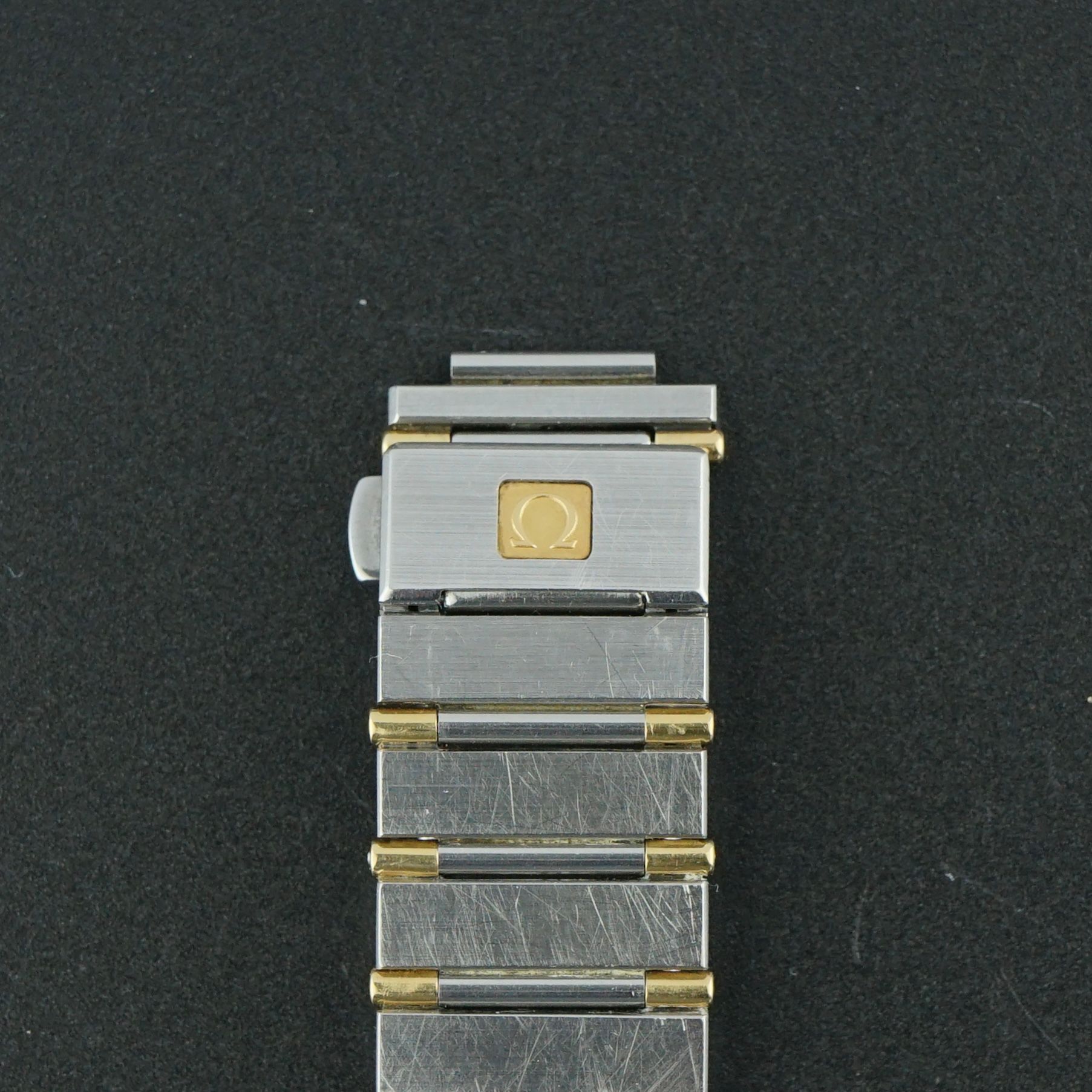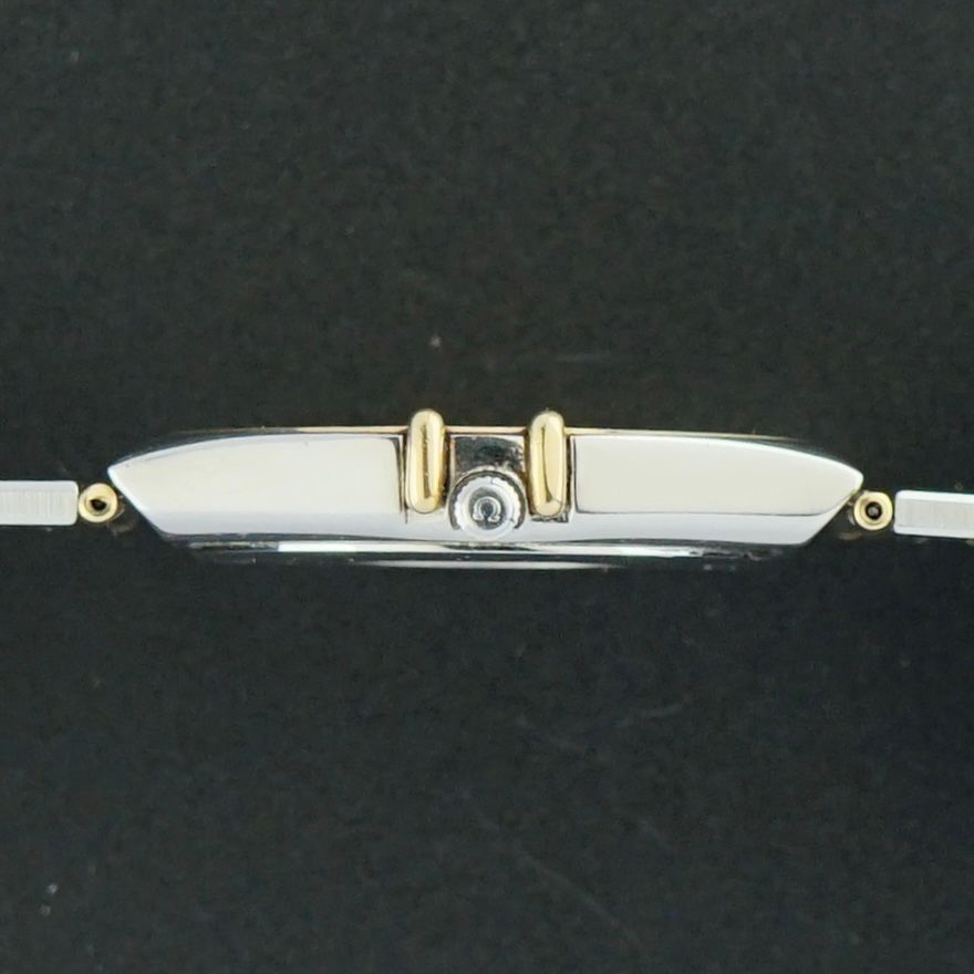 Omega Constellation vintage del 1993, con un bellissimo quadrante color champagne in condizioni impeccabili. L'orologio ha una lunetta in oro giallo 18 carati con numeri romani in lacca nera. La cassa in acciaio inossidabile è completata da maglie parzialmente dorate. Il bracciale è quasi della lunghezza completa, adatto per polsi da 14 a 19,5 cm. Alimentato da un movimento al quarzo calibro 1438, revisionato a marzo 2026, funziona e va alla grande. Condizioni generali buone, ideale come orologio da indossare quotidianamente o da cerimonia.