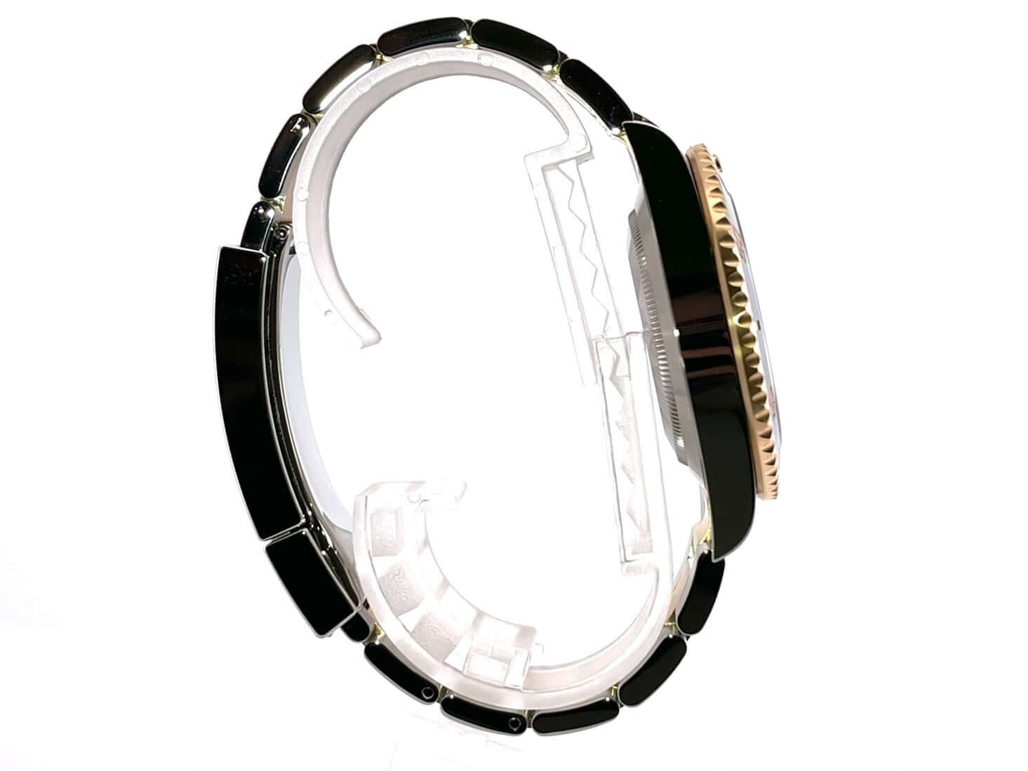 Cassa realizzata in acciaio inossidabile lucido e satinato, diametro cassa 41 mm, altezza cassa 12,5 mm, lunetta in oro giallo 18 carati zigrinata con inserto in ceramica blu, scala dei 60 minuti e punto luminoso rotante, bracciale Oyster in acciaio inossidabile / oro giallo 18 carati lucido e satinato con chiusura pieghevole di sicurezza, quadrante blu con indici luminosi applicati e punti luminosi, lancette luminose, movimento automatico, calibro Rolex 3235 con 31 rubini, 28.800 A/h, riserva di carica di 70 ore, indicazione della data con regolazione rapida e lente d'ingrandimento, cronometro, vetro zaffiro, corona avvitata con protezione laterale, fondo in acciaio inossidabile avvitato, impermeabile fino a 30 bar.