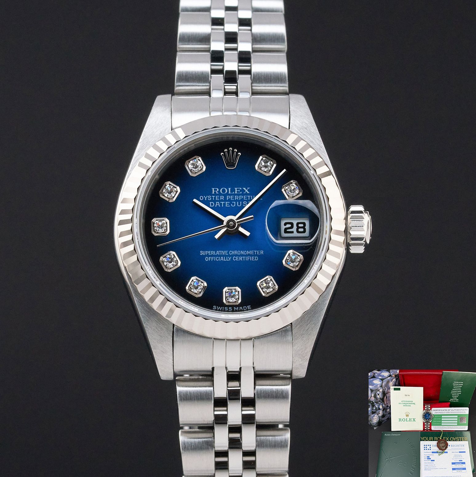 Rolex Lady Datejust, 79174, 26mm, 2000, Steel, Blue Vignette Big Diamond dial, Fullset, 1y warranty