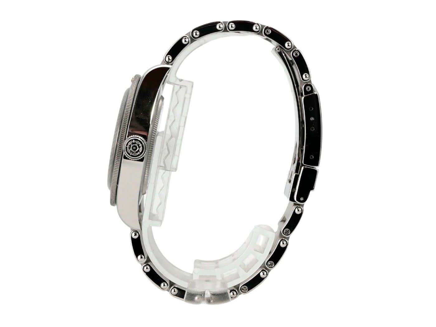 - Lievi segni di usura come micro-graffi o piccoli graffi superficiali. Cassa, lunetta e bracciale mantengono bordi definiti e forma originale. Potrebbe essere stato lucidato professionalmente senza alterare i contorni originali. Completamente funzionante dal punto di vista meccanico.