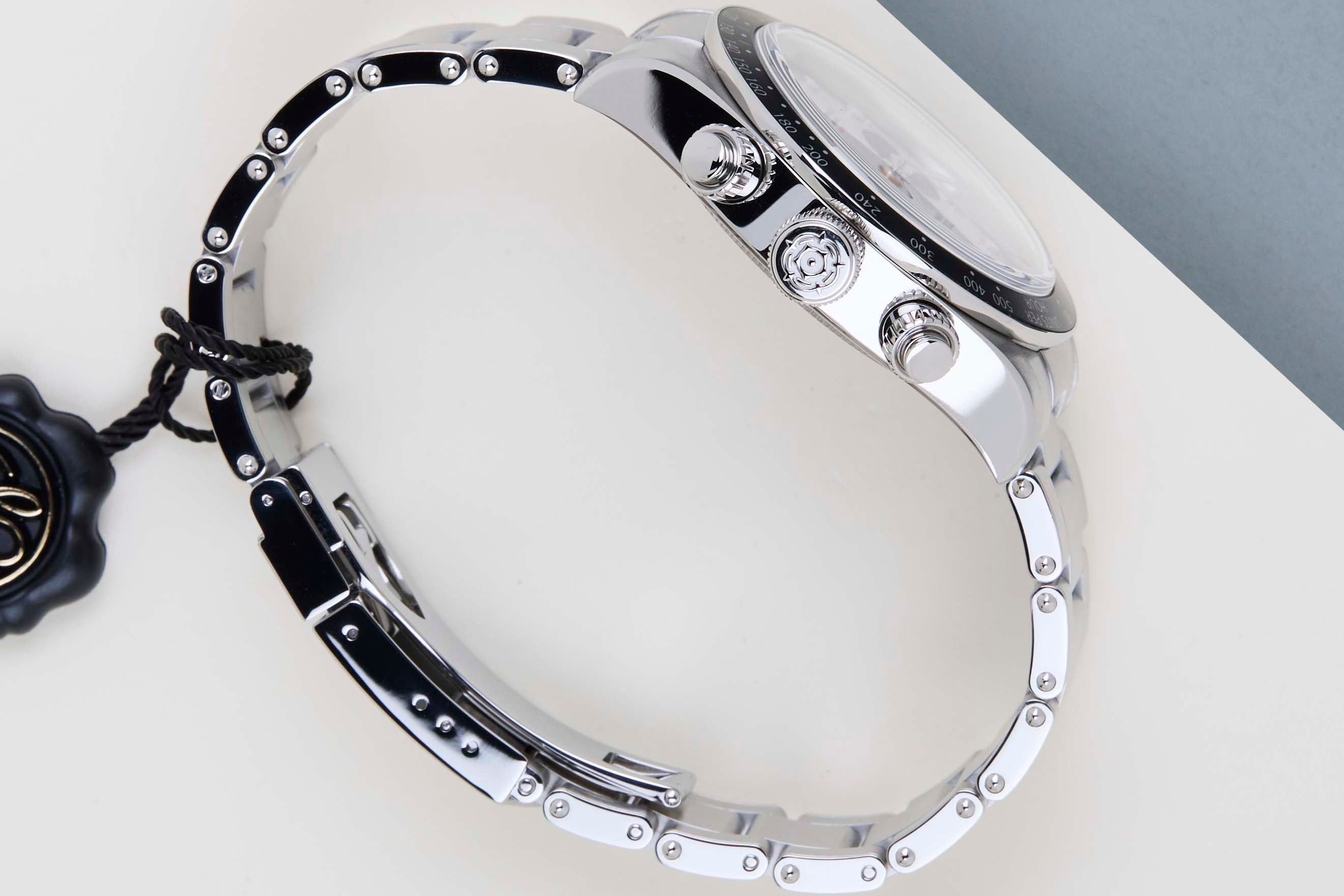 - L’orologio non è stato indossato ed è in condizioni pari al nuovo. Può provenire direttamente da un rivenditore autorizzato o dal marchio stesso, oppure essere stato recentemente scambiato senza essere mai indossato.