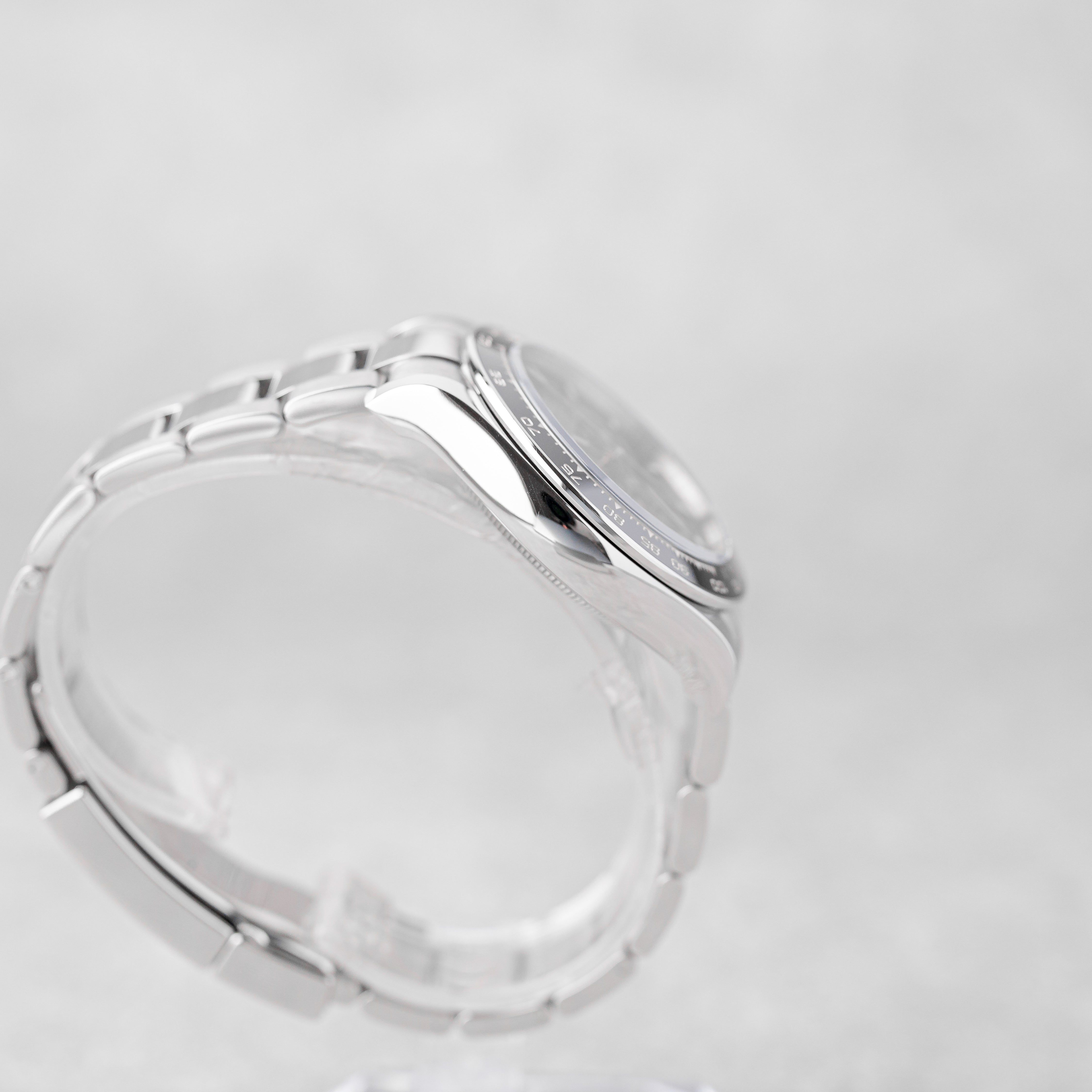 L'ultima evoluzione di un'icona, questo Rolex Daytona 126500LN presenta il classico quadrante nero con aggiornamenti raffinati alla cassa e al movimento. Presentato in ottime condizioni, viene fornito come Full Set ed è coperto dalla garanzia internazionale Rolex fino a 12/2028. Un Daytona moderno molto ricercato, che combina prestazioni all'avanguardia con un'eredità di corse senza tempo.