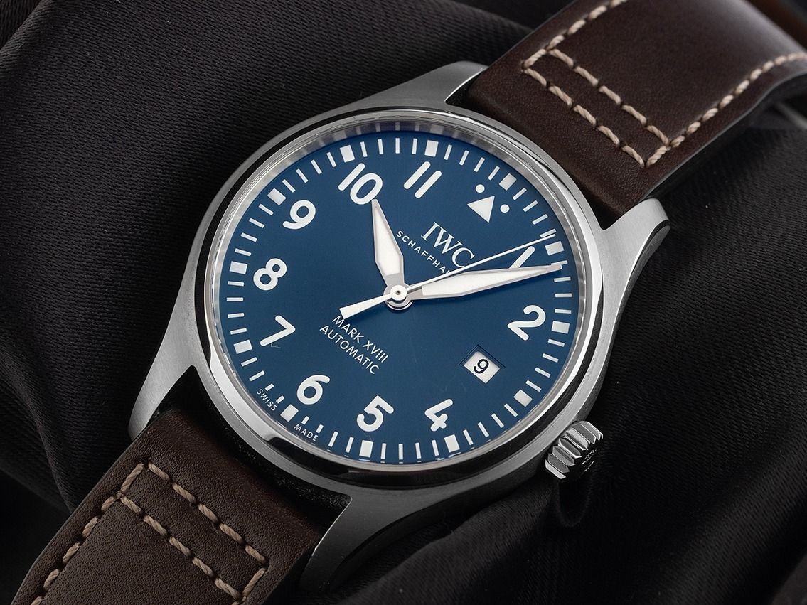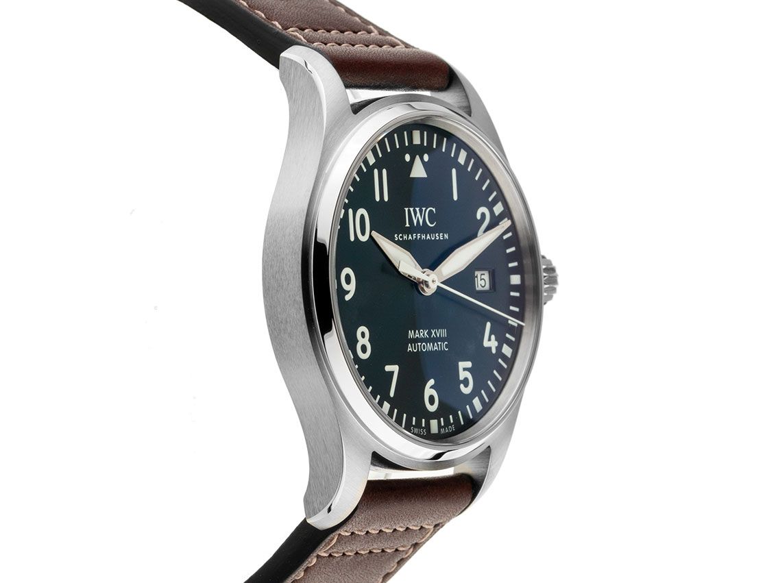 IWC Pilot’s Watch Mark XVIII Edition Le Petit Prince Stahl Automatik Armband LederGehäuse Edelstahl satiniert, Gehäusedurchmesser ohne Krone 40mm, Gehäusehöhe 11,0mm. Lünette Edelstahl glatt und poliert. IWC Armband Leder braun mit heller Ziernaht, Anstoßbreite 20mm, IWC Stiftschließe Edelstahl mit Hersteller-Logo. Zifferblatt nachtblau mit arabischen Ziffern und Indexen sowie Edelstahl Zeigern. Uhrwerk Automatik, IWC Manufakturkaliber 30110 mit 21 Edelsteinen. Anzeige von Stunde, Minute und Sekunde über Zeiger aus der Mitte mit Sekundenstopp zur sekundengenauen Einstellung der Uhrzeit, Datumsanzeige mit Schnellverstellung bei 3 Uhr. Saphirglas kratzfest. Krone mit Hersteller-Logo. Boden Edelstahl verschraubt und graviert. Gewicht der Uhr inkl. Armband 75g. Referenznummer: IW327010, Gehäusenummer: 5724XXX, Baujahr: 2019, ID: P266654000326H-6900, Artikelnummer: 10000085062. Original IWC Box sowie Watchregister Auszug von März 2026, The Watch Register Zertifikat / ohne Eintrag (Internationale Datenbank für verlorene oder gestohlene Uhren). Superschnäppchen, sehr seltenes Sammlerstück. Wie Neu. Lieferzeit sofort.