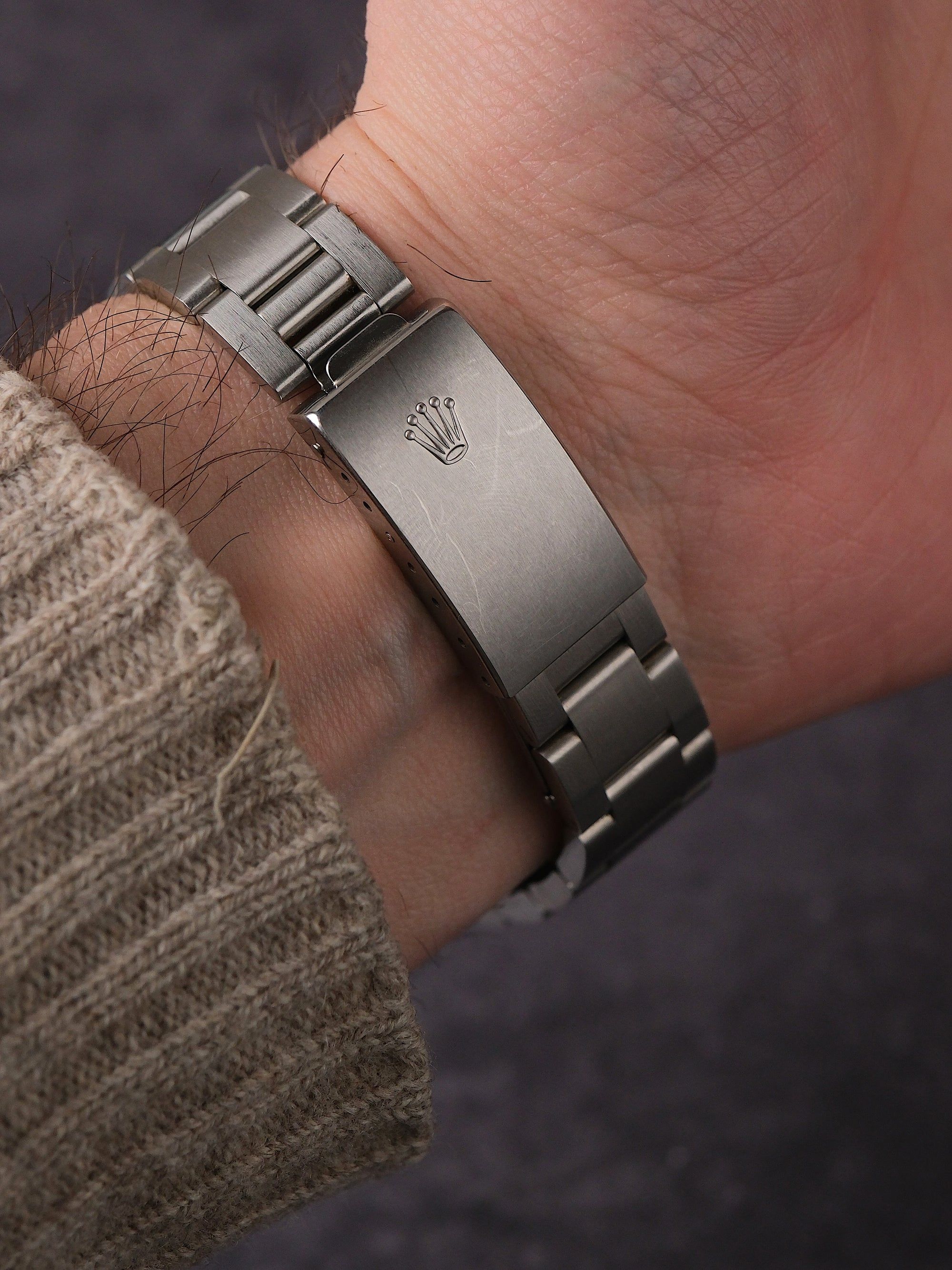 - Lievi segni di usura come micro-graffi o piccoli graffi superficiali. Cassa, lunetta e bracciale mantengono bordi definiti e forma originale. Potrebbe essere stato lucidato professionalmente senza alterare i contorni originali. Completamente funzionante dal punto di vista meccanico.
