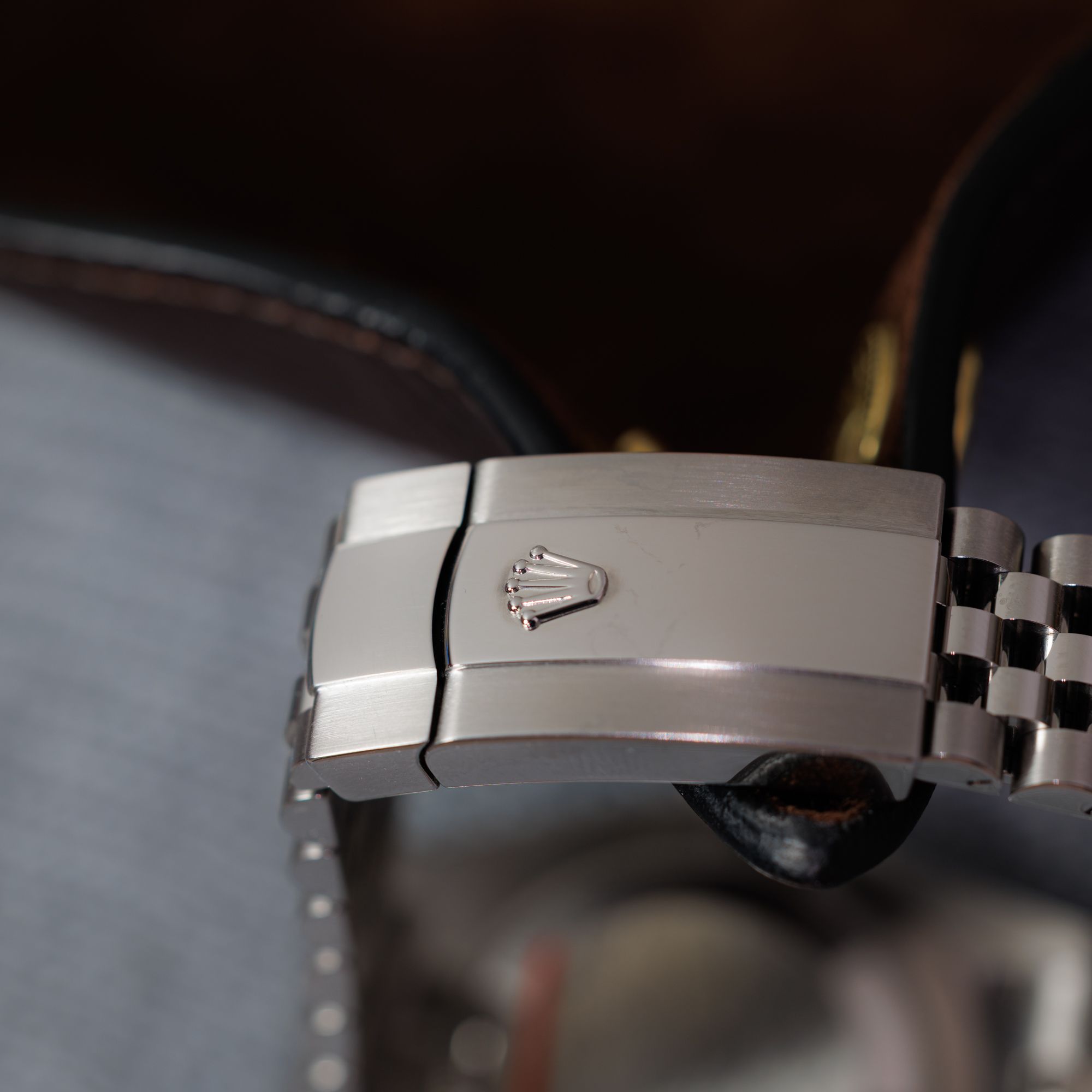 The Rolex Datejust in its most classic and versatile form—a black dial paired with a Jubilee bracelet and a smooth steel bezel. This configuration perfectly combines elegance with everyday functionality.The black dial is an absolute classic—clear, timeless, and suitable for any outfit. Paired with the Jubilee bracelet, the watch takes on a more refined, slightly jewel-like character while retaining its sporty versatility.