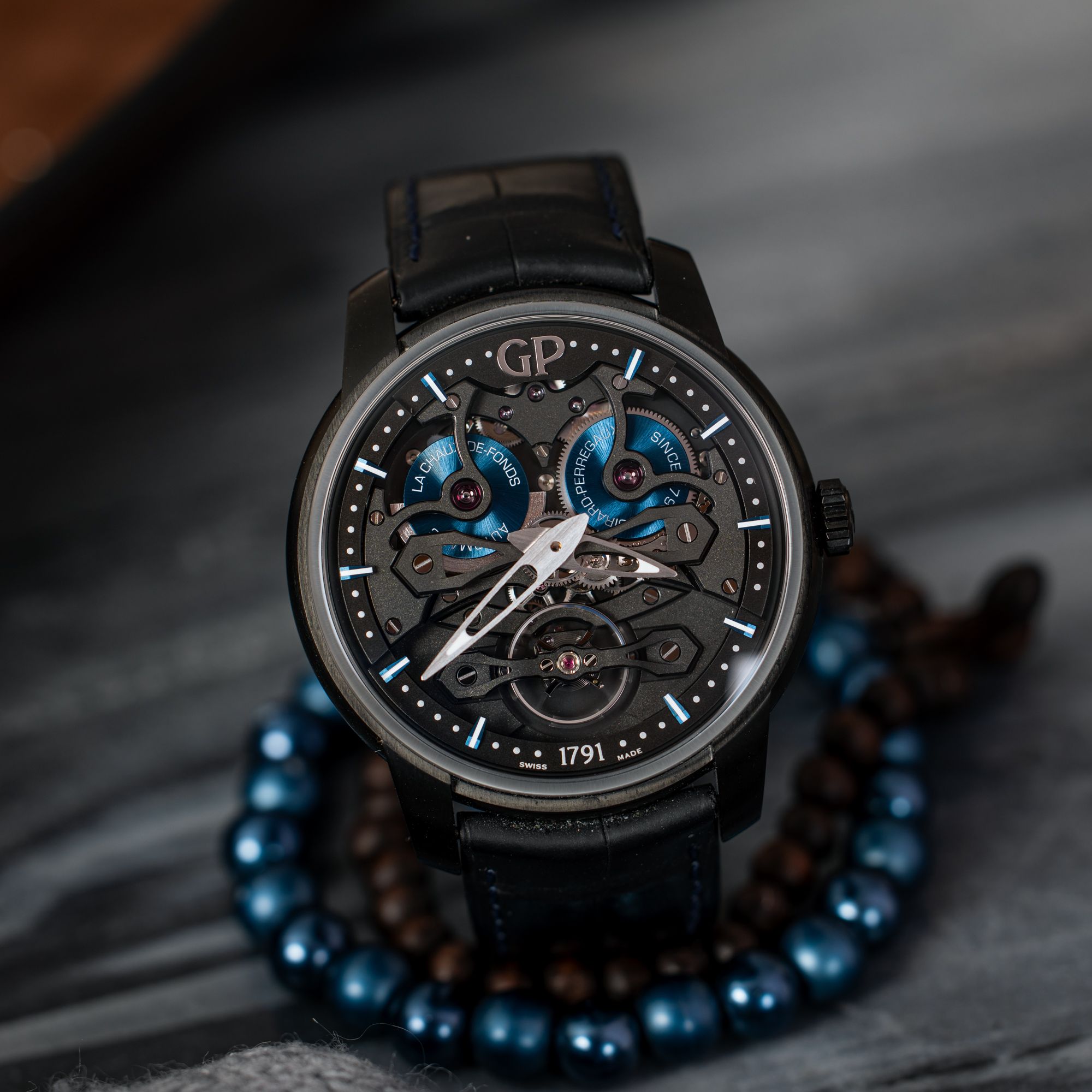 At its core is the in-house GP08400-0001 automatic movement, offering approximately 48 hours of power reserve and designed with both aesthetics and performance in mind.