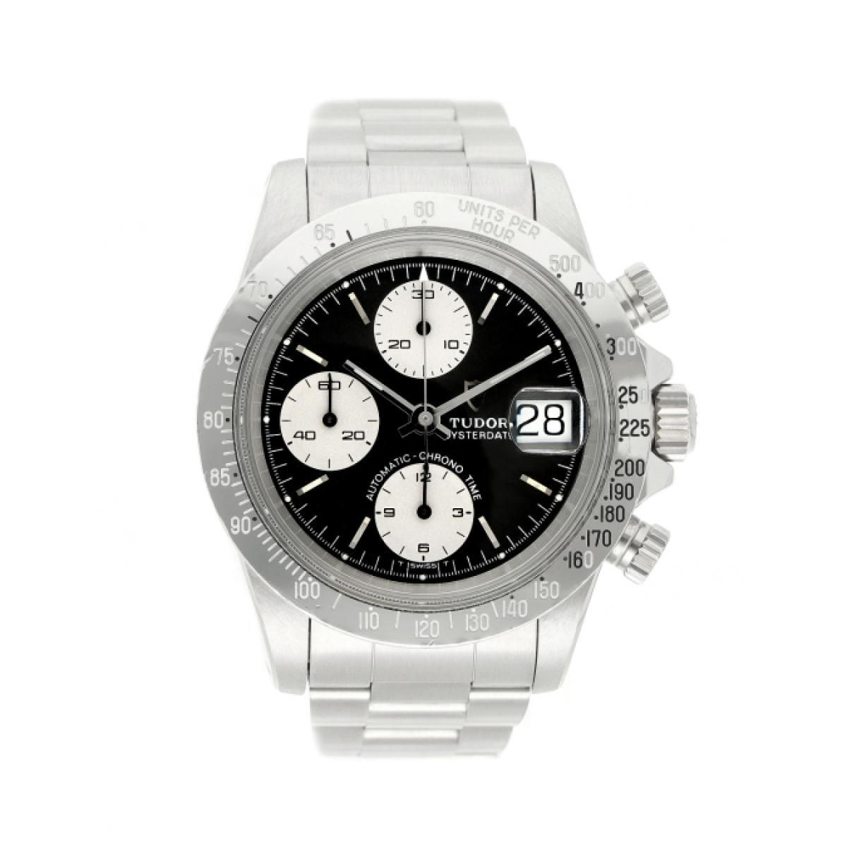 Tudor Oysterdate Big Block from 1990 with a 40 mm stainless steel case and folding clasp. This men's Tudor watch is in good condition.