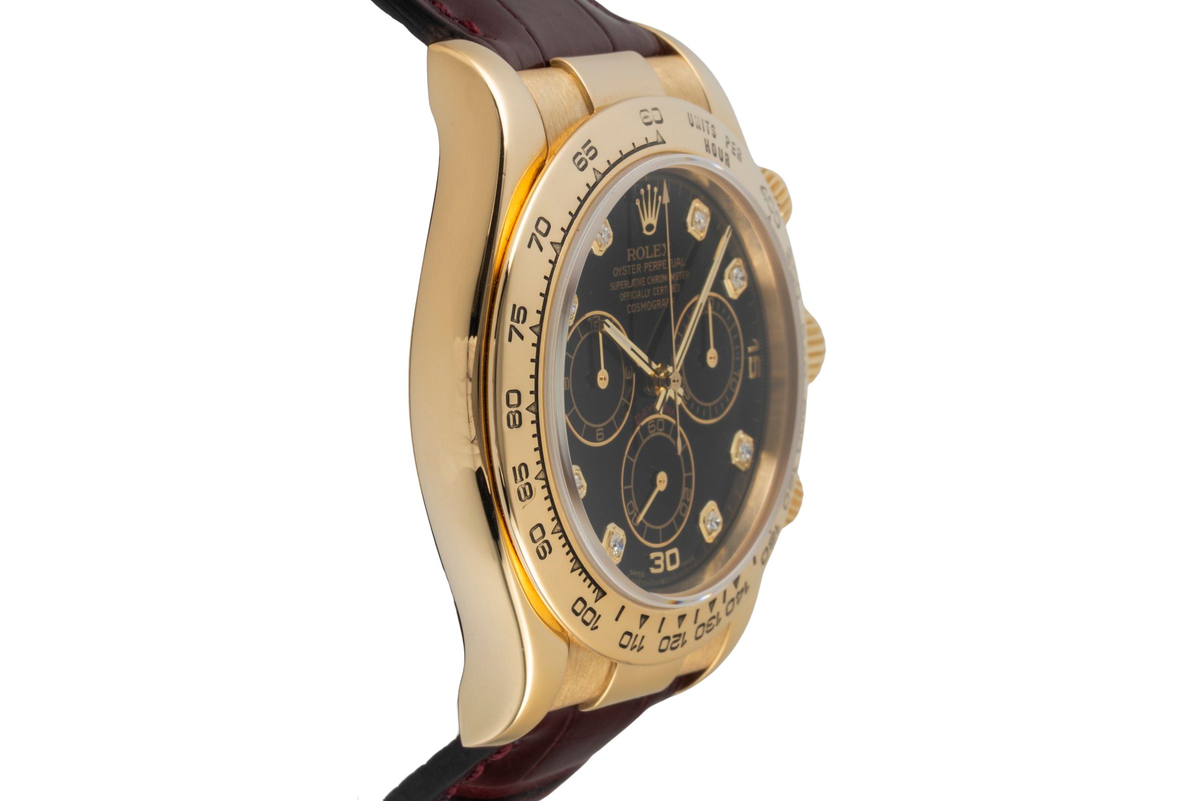 Alternative title: Rolex 116518 - Daytona; Rolex Daytona Chronograph 18k Gold Black Diamond Dial Ref. 116518 P-Serie [2601383]