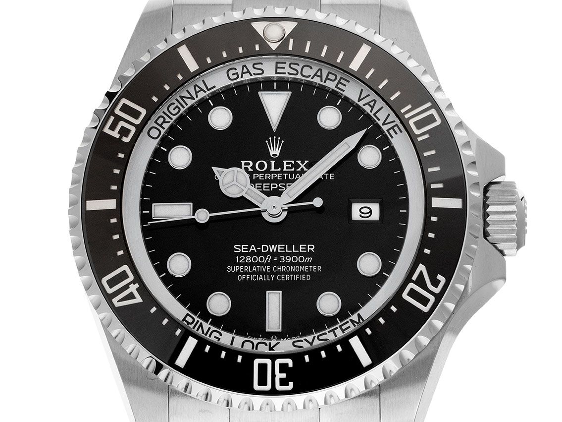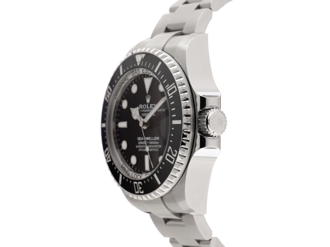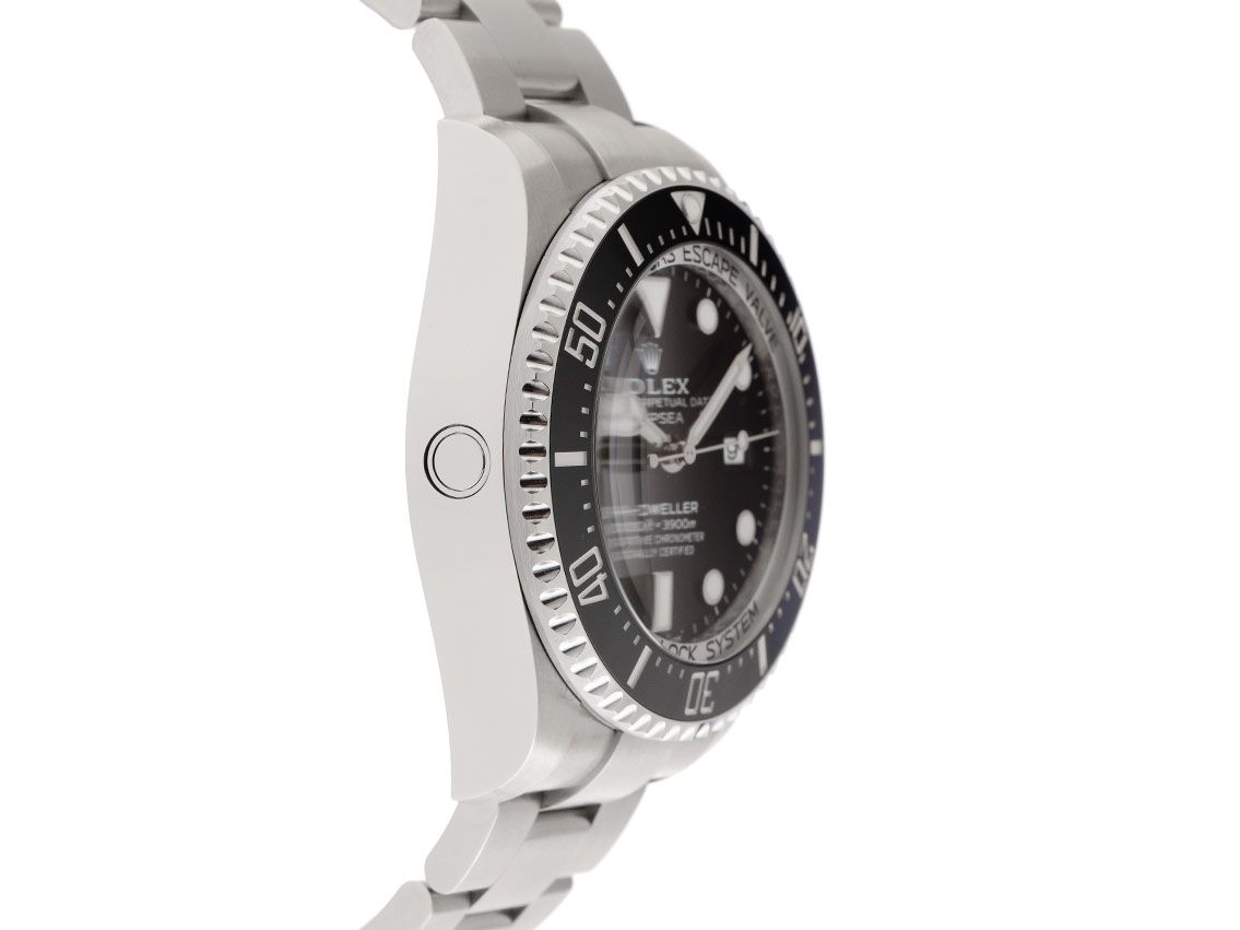 Rolex Deepsea Stahl Automatik Armband Oyster Gehäuse Edelstahl poliert und satiniert, Gehäusedurchmesser ohne Krone 44mm, Gehäusehöhe 17,6mm. Lünette Edelstahl gerädelt mit schwarzem Keramik Inlay, 60-Minuten Skala und Leuchtpunkt für Tauchgänge, einseitig drehbar. Heliumventil bei 9 Uhr. Armband Oyster Edelstahl poliert und satiniert, Sicherheitsfaltschließe Edelstahl mit Hersteller-Logo. Zifferblatt schwarz mit aufgesetzten in Weißgold gefassten Indexen und Punkten sowie weißgoldenen Zeigern. Uhrwerk Automatik, Chronometer mit Zeugnis, Rolex Manufakturkaliber 3235 mit 31 Edelsteinen, Paramagnetische blaue Parachrom-Spirale und hochleistungsfähiges Paraflex-Antischocksystem. Anzeige von Stunde, Minute und Sekunde über Zeiger aus der Mitte mit Sekundenstopp zur sekundengenauen Einstellung der Uhrzeit, Datumsanzeige mit Schnellverstellung bei 3 Uhr. Saphirglas kratzfest und bombiert, extrastark (5,5mm). Triplock-Aufzugskrone mit dreifachem Dichtungssystem, verschraubbar mit Flankenschutz und Hersteller-Logo. Boden Titan verschraubt, graviert. Gewicht der Uhr inklusive Armband 215g, Länge des Armbandes inklusive Gehäuse 180mm. Referenznummer: 126660, Gehäusenummer: D7D89XXX, ID: P2806173000426HW-13800, Artikelnummer: 10000085408. Mit Gangkontrolle und kompletter äußerlicher Aufarbeitung von April 2026. Original Rolex Box mit Umkarton und Garantie Papiere von Juli 2020, LC 170 / Italy EU sowie Beschreibung, Ledermäppchen, Rolex Chronometer-Siegel und Watchregister Auszug von April 2026, The Watch Register Zertifikat / ohne Eintrag (Internationale Datenbank für verlorene oder gestohlene Uhren), Full Set. Kapitalanlage mit Wertsteigerungspotential, ausverkauftes Sammlerstück wird nicht mehr hergestellt. Wie Neu. Lieferzeit sofort. Inklusive certified pre owned Siegel / Uhrenpass mit einem Farbbild, der genauen Beschreibung sowie dem Wiederbeschaffungswert der Uhr über 13800,-€ und 1000 Tage Garantie ab Kaufdatum.